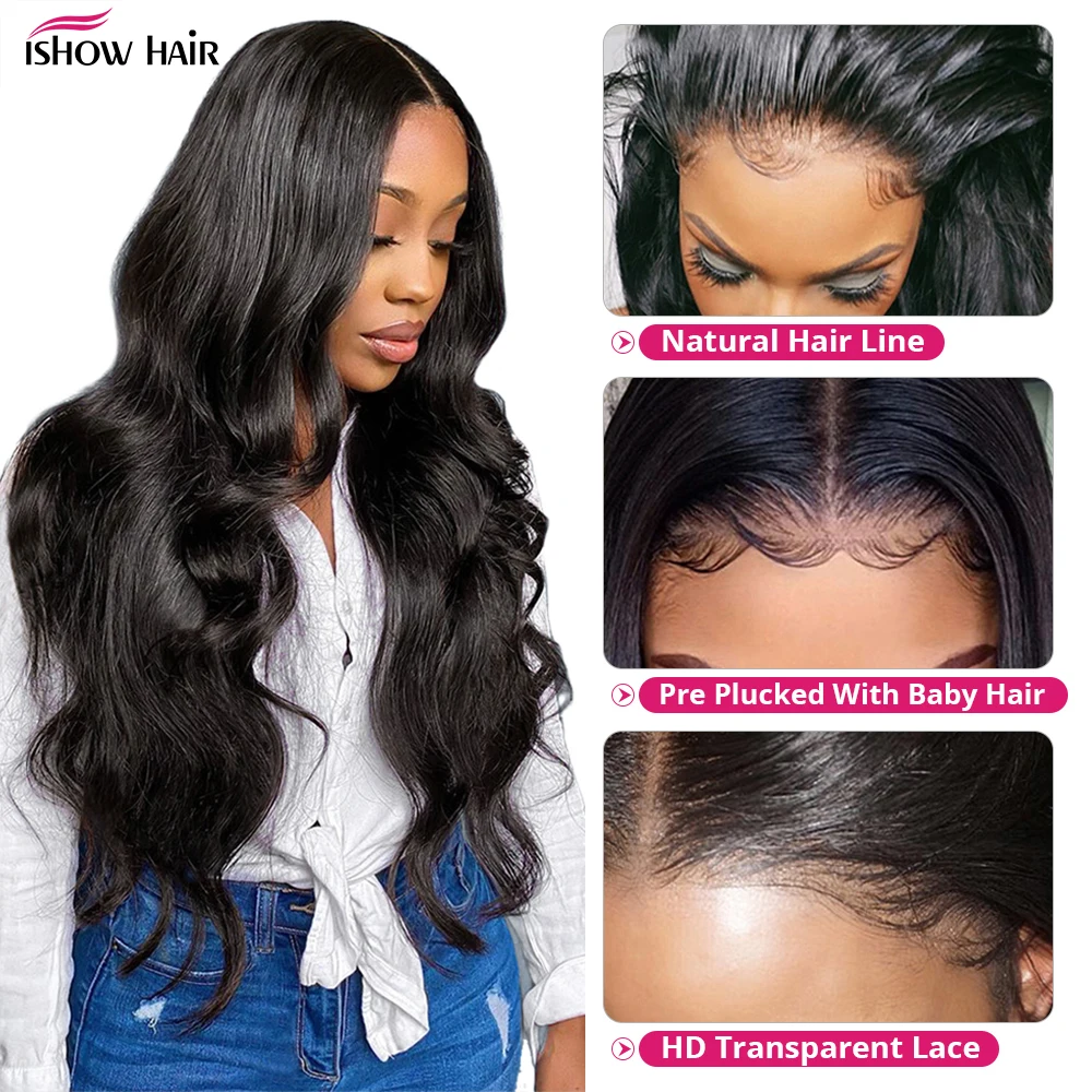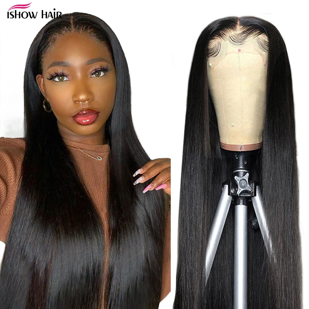 Парик Ishow 30 32 дюйма на сетке, дешевый Прозрачный передний парик 13X 2 на сетке, предварительно выщипанные бразильские натуральные волосы для женщин