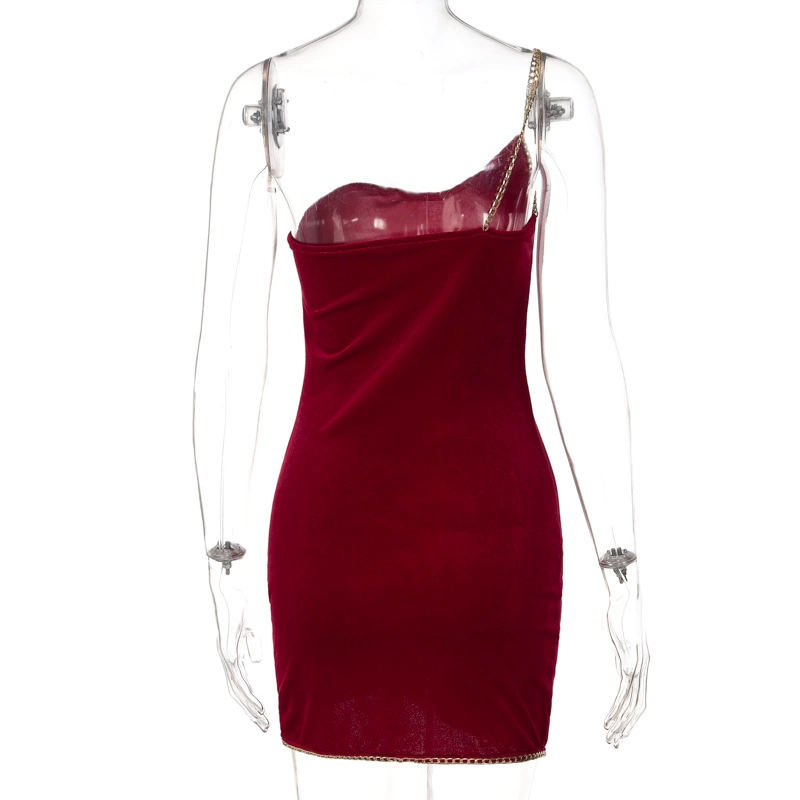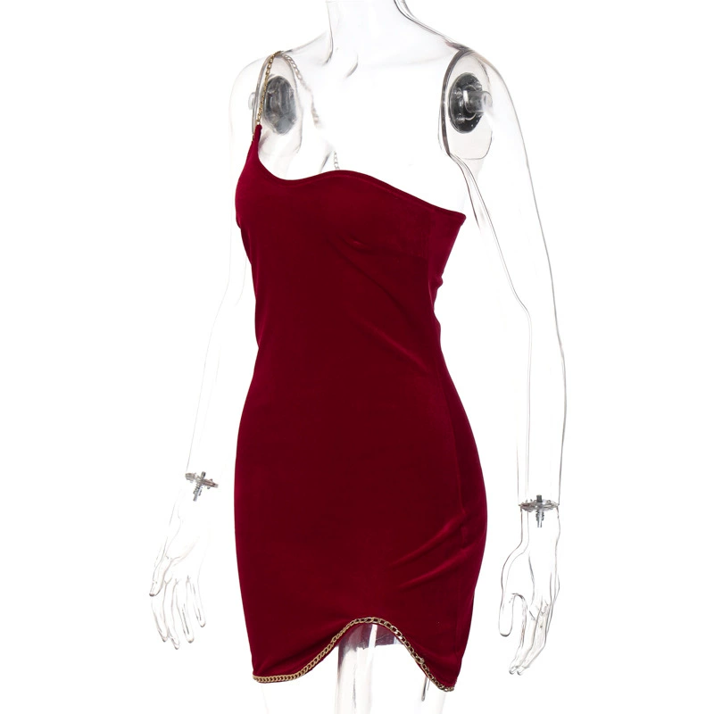 Gtpdpllt вельветовые платья на одно плечо для женщин, пикантное облегающее женское уличное платье без рукавов с открытой спиной на бретелях-спагетти с металлической цепочкой