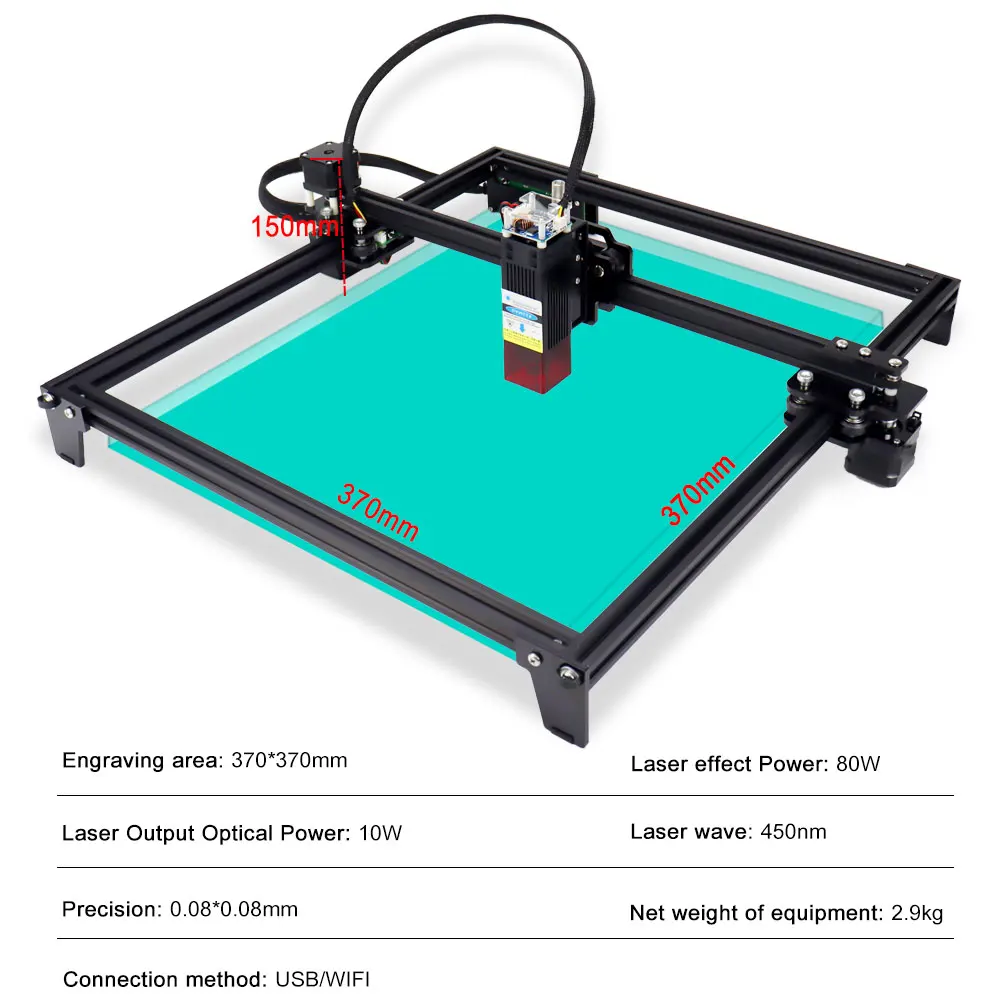 Модель 80 Вт (лазерный выход 10 Вт) поддерживает больше материалов для гравировки и резки, имеет более тонкую гравировку и более высокую скорость гравировки по сравнению с моделью 40 Вт (лазерный выход 5 Вт)