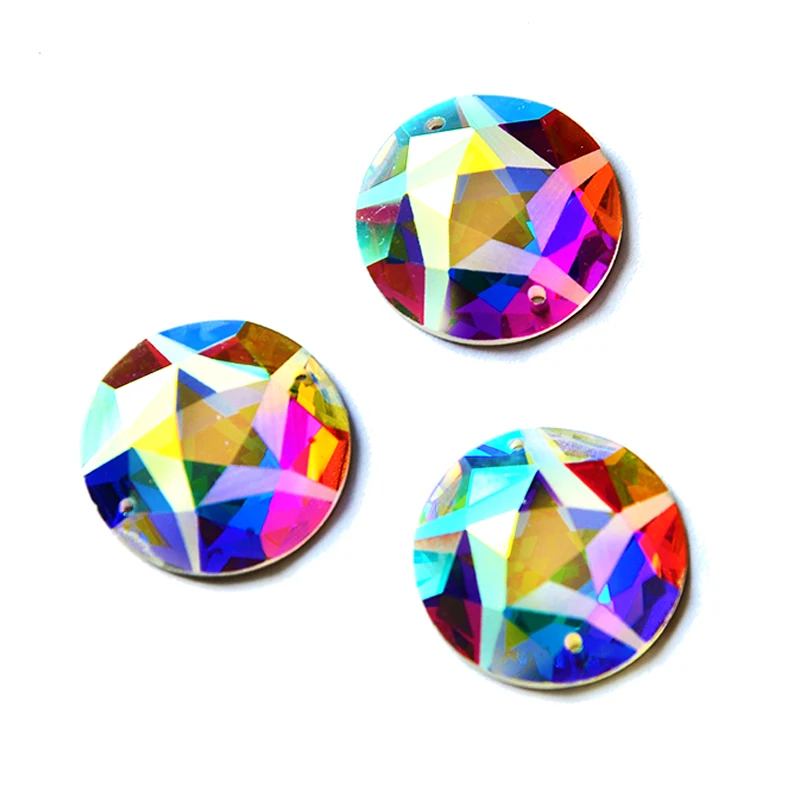 Большой Кристалл AB 2 отверстия Пришивные зеркальные стразы с плоск...