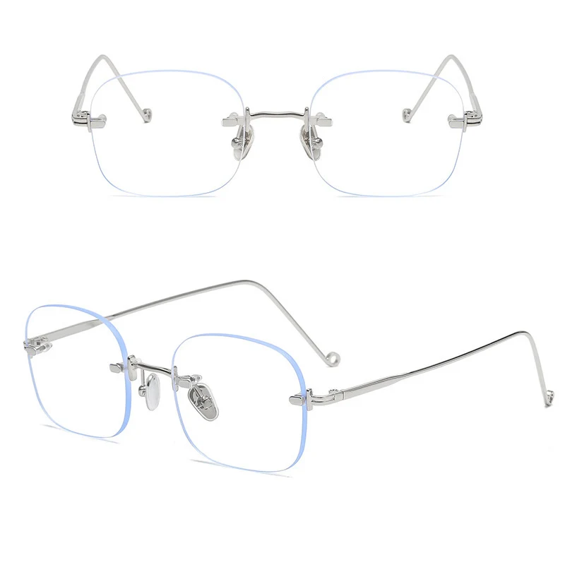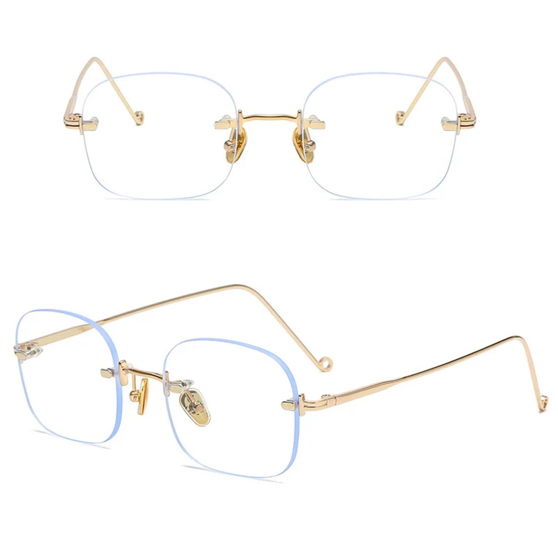 Модные квадратные очки без оправы с прозрачными линзами, женские винтажные металлические оправы для очков, искусственные очки, прозрачные очки с защитой от синего света