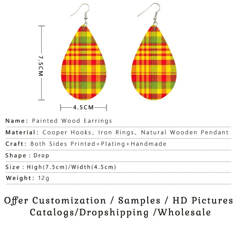 SOMESOOR черно-желтые красные цвета, деревянные серьги-подвески с н...
