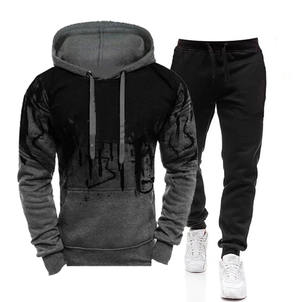Мужской спортивный костюм из двух предметов: толстовка с капюшоном и спортивные штаны