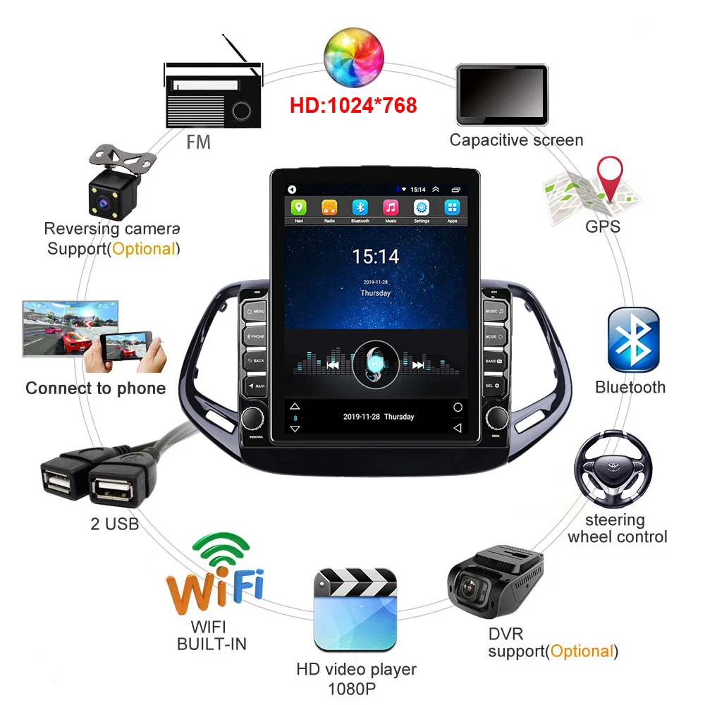 Автомагнитола 4G Carplay Android для JEEP Compass 2017, 2018, 9,7 дюймов, автомобильный мультимедийный плеер с сенсорным экраном Тесла, GPS-навигатор, стерео головное устройство