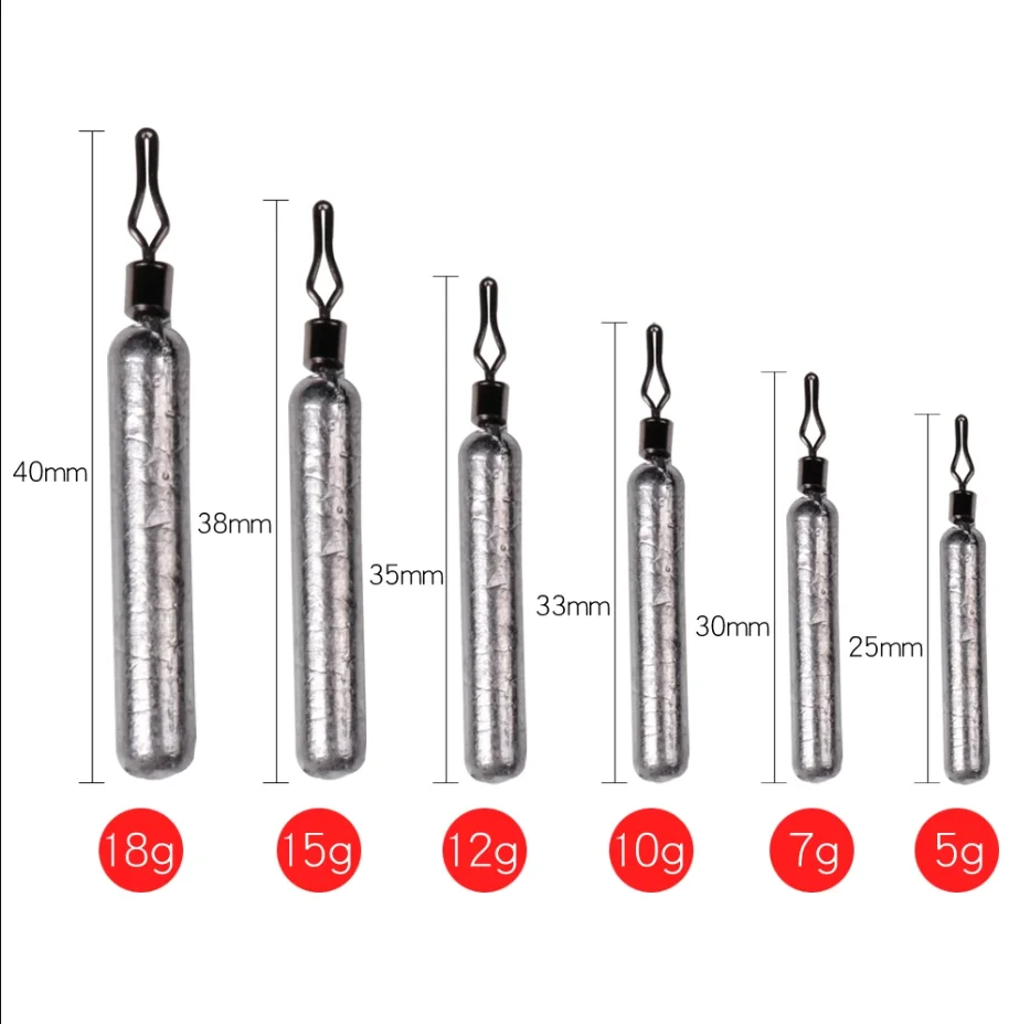 По сравнению с другими формами, изысканная цилиндрическая форма свинца, повешенная на рыбалке, более эффективна вместо того, чтобы лежать в камнях.
