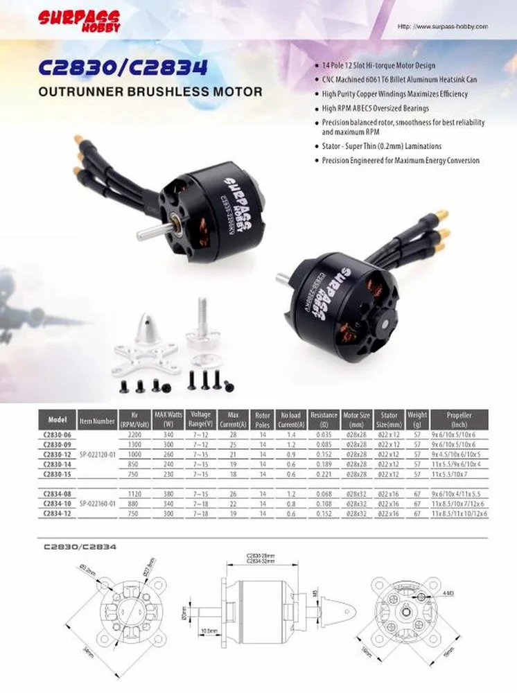 TTHOBBY Surpass бесщеточный мотор Outrunner 2204 C2822 2826 для радиоуправляемых DYS квадрокоптеров с фиксированным крылом летательных аппаратов
