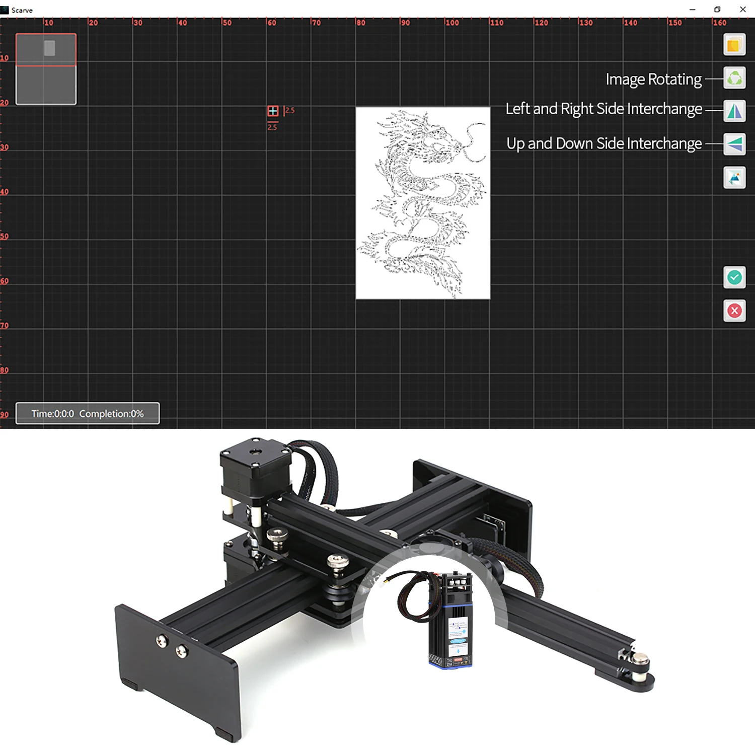 Эта лазерная гравировальная машина имеет функцию резьбы и резки, с более высокой точностью и более высокой стабильностью, чем старая версия. Отлично подходит для самостоятельной гравировки начинающих. Он поддерживает регулируемая мощность лазера, удобен и подходит для многих видов гравировки материала. Особенности: Обновленная версия --DK-4.0 лазерный гравер специально разработан для DIY лазерной гравировки с профессиональным программным обеспечением управления, что дает вам Экстремальный портативный опыт. И это обновленная версия, которая совместима с программным обеспечением GRBL. 6 типов для опции --Лазерный гравер без лазерного модуля, лазерный гравер с регулируемым Фокусное расстояние (5,5 Вт/10 Вт/20 Вт) или фиксированное фокусное расстояние (30 Вт/40 Вт) лазерного модуля. Он может гравировать бумагу, дерево, ткань, пластик, кожу, анодированный алюминий и т. д. различные лазерные модули для гравировки/резки различных видов материала и разной толщины. Экономия времени и экономичность --Самым большим преимуществом этой обновленной машины является быстрая скульптура, вы можете завершить скульптуру всего за несколько минут. USB DIY лазерная гравировальная машина для лазерной резьбы, и наша машина более экономична, чем обычные гравировальные машины. Движение одной руки --Новая конструкция делает его более легким и более портативным, а также обеспечивает стабильность. Легко и удобно в использовании. Простая сборка и установка драйвера --Вам просто нужно собрать ось X и ось Y вместе, что очень легко начать. Установить драйвер и программное обеспечение очень просто. Загрузите и установите непосредственно по ссылке, программное обеспечение будет автоматически подключено после открытия программного обеспечения. Простота в эксплуатации --Поддержка нашего профессионального саморазработанного программного обеспечения, совместимого с Win 7 и выше, которое поддерживает различные форматы изображений. Машина может легко печатать любое изображение и может быть непосредственно прочитана в формате jpg, PXIG, GIF, ICO, png, gcode и т. Д. Многофункциональный --Поддерживает работу приложения для компьютера и телефона (Совместимость с Android), интеллектуальную коллекцию и создание, сканирование фотографий, интеллектуальный алгоритм автоматической печати подключений. Возьмите фотографию JPG/ PNG/ Gcode с камеры или альбома и отправьте фотографию непосредственно на программное обеспечение. Другие функции --Профессиональный алгоритм обработки файлов, программное обеспечение может восстановить ваш дизайн 1:1 без потерь на каждый пиксель. Различные алгоритмы изображения лучше представляют характеристики изображения членов вашей семьи, друзей или идолов. Вы можете сделать сложные изменения в PS/ Inkscape /CAD или аналогичные и просто сжечь с включенной программой. Примечание: 1. Пожалуйста, носите лазерные очки во время использования и избегайте касания лазера непосредственно глазами и кожей. 2. DIY Kit, нужно собрать самостоятельно. 3. Посылка для доставки содержит флеш-накопитель USB, вы можете получить руководство по лазерной гравировке, руководство пользователя, ссылку для загрузки программного обеспечения и т. д. 4. Автономный контроллер входит в посылка. 5. Размеры и цвет изделия на фото может быть s светильник ly различных в связи с тем, что измерения выполнены вручную и раз