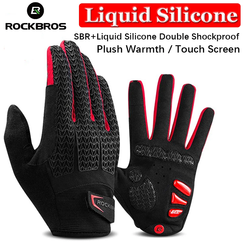 Велосипедные перчатки ROCKBROS, теплые ударопрочные с закрытыми пальцами, для сенсорных экранов, для горных велосипедов, мотоциклов, езды на лыжах, Осень-зима