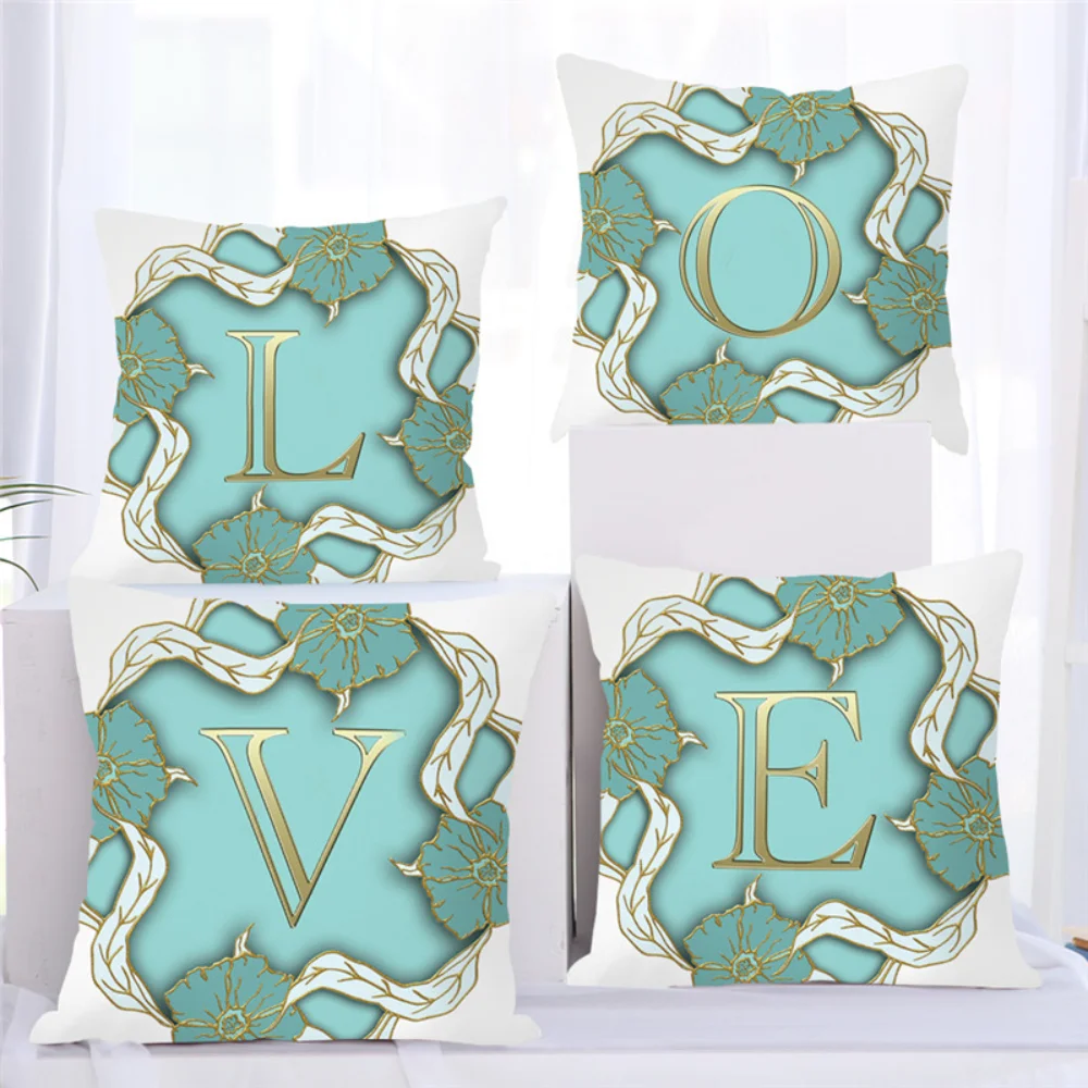 Бытовая декоративная подушка с золотыми буквами Чехол-Подушка Бирюзовая гирлянда наволочка-подушка Подходит для домашнего дивана обнимающая Подушка Чехол