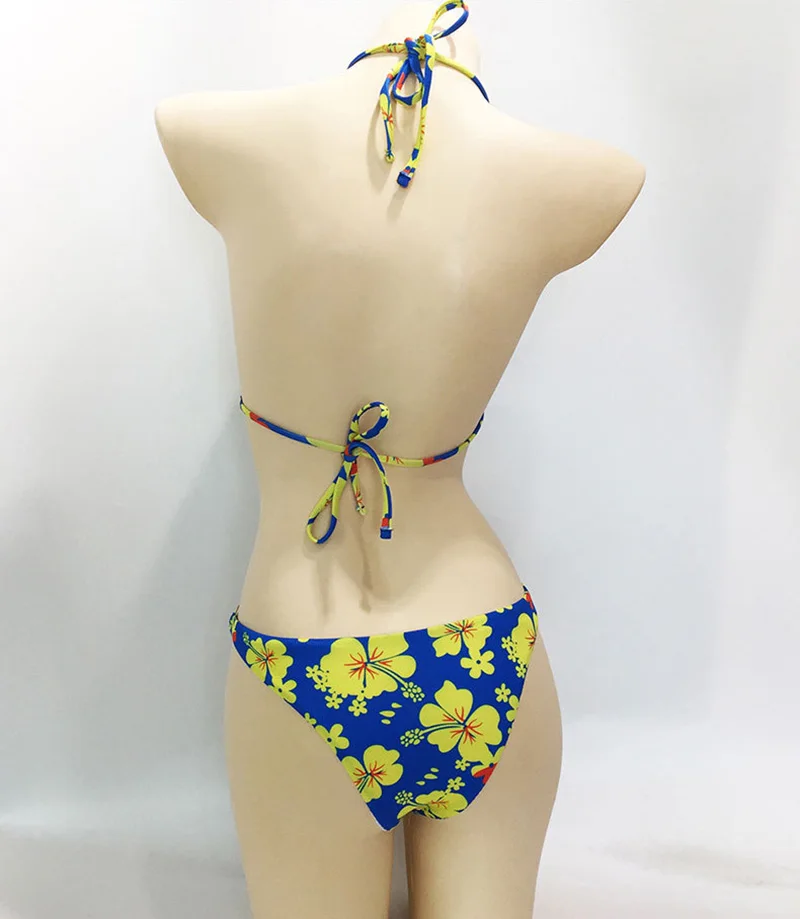 Купальник-стринги, треугольный купальник, женские бикини, сексуальная пляжная одежда, микро стринги 2022, летний комплект бикини с кольцом и цветочным принтом, бикини