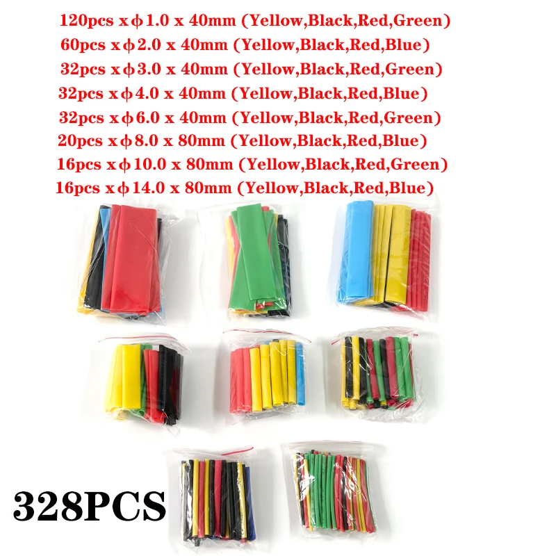 1x328 штук (8 размеров) 2:1 термоусадочная трубка