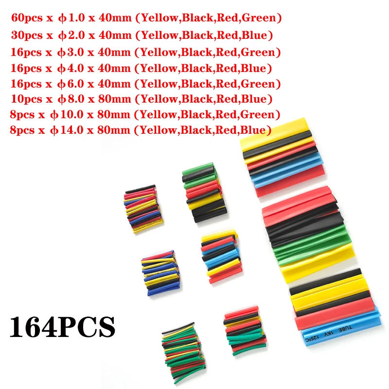 1x164 шт. (8 размеров) 2:1 термоусадочная трубка