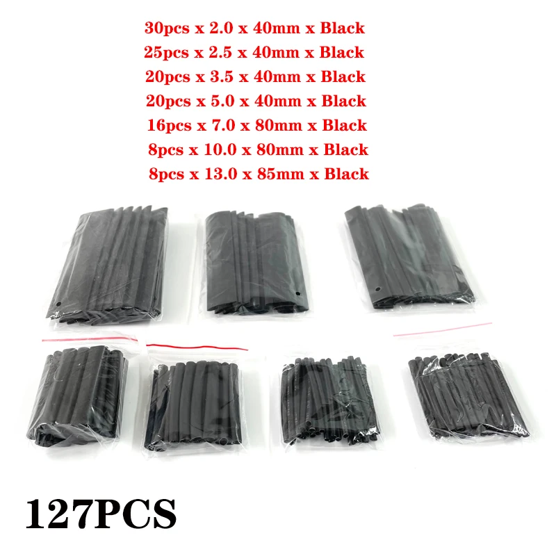 1x127 штук (7 размеров) 2:1 термоусадочная трубка