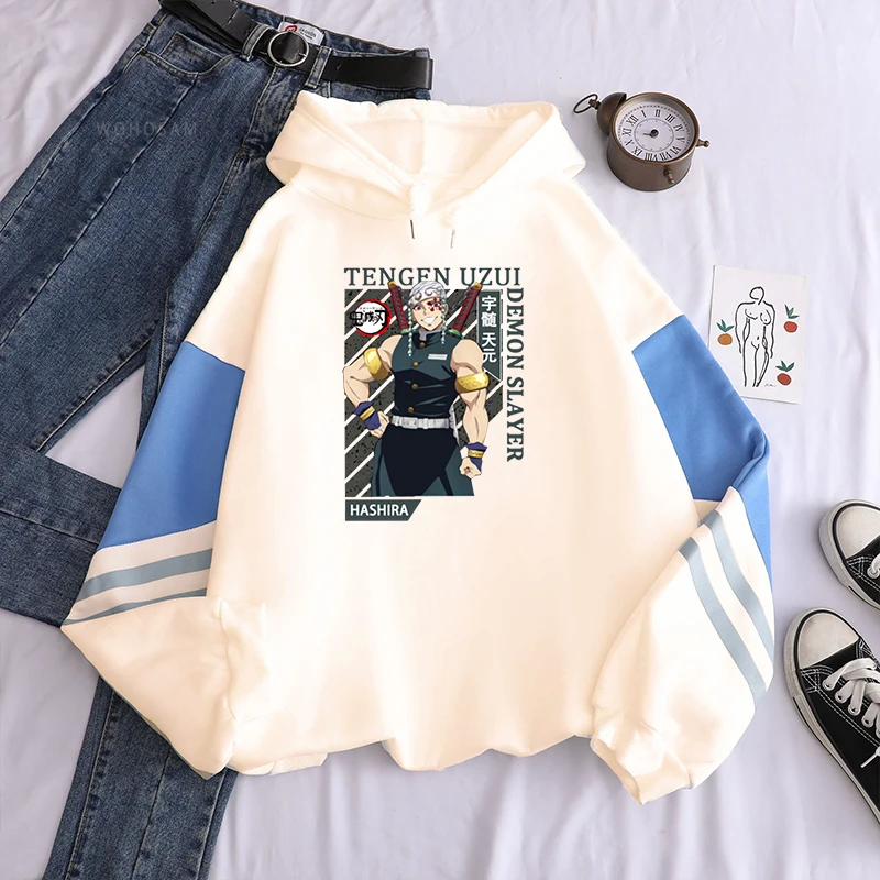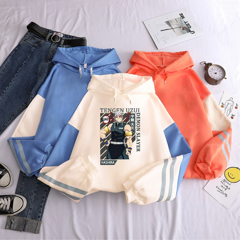 Толстовка удзи Тенген из японского аниме рассекающий демонов, Свитшот оверсайз в стиле пэчворк с длинным рукавом и графическим принтом манги кинетсу, готика