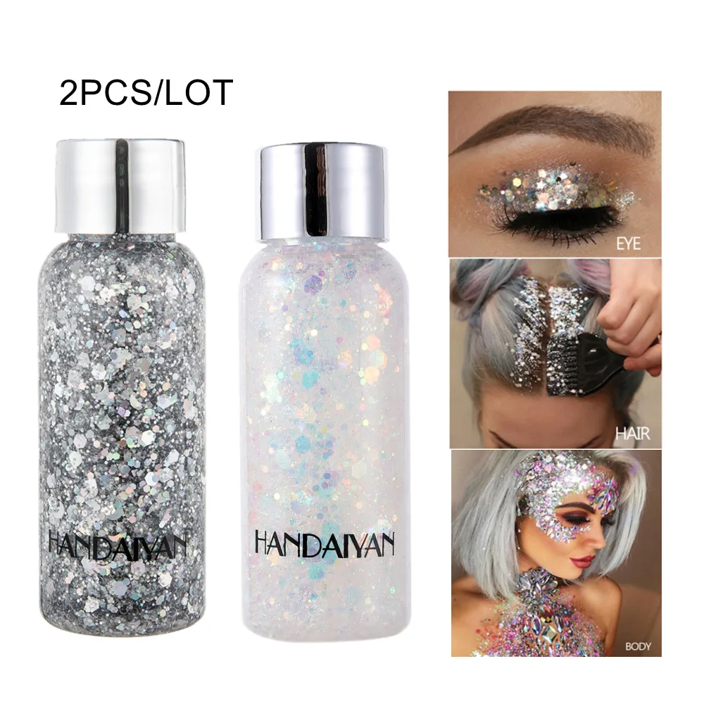 2 шт.лот гель с блестками для глаз, стойкие тени для век для волос, тела, лица, мерцающие тени для век для вечеринки, фестиваля, сцены, макияжа, блестки 9 цветов
