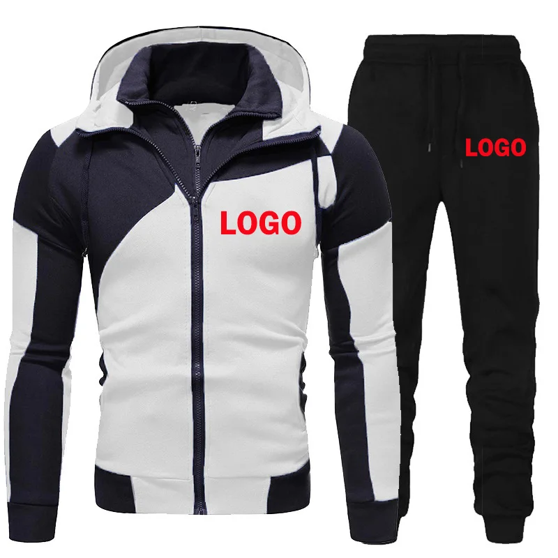 Мужские спортивные костюмы с логотипом на заказ, повседневная спортивная одежда, весна-осень, толстовка с длинным рукавом, штаны для бега трусцой, спортивный костюм в стиле пэчворк