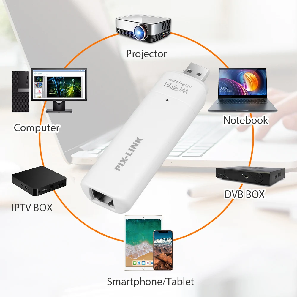 Подключен к беспроводной сети: когда сетевой кабель подключен к компьютеру, вы можете напрямую получить доступ к Интернету без набора номера, таких как отели, квартиры, арендные дома, офисы и обмен широкополосным доступом с соседями. Вам нужно только подключить сетевой кабель к порту ретранслятора Ethernet, вы можете использовать проводной для беспроводной связи. Не требуется установка для подключения и воспроизведения. Zh