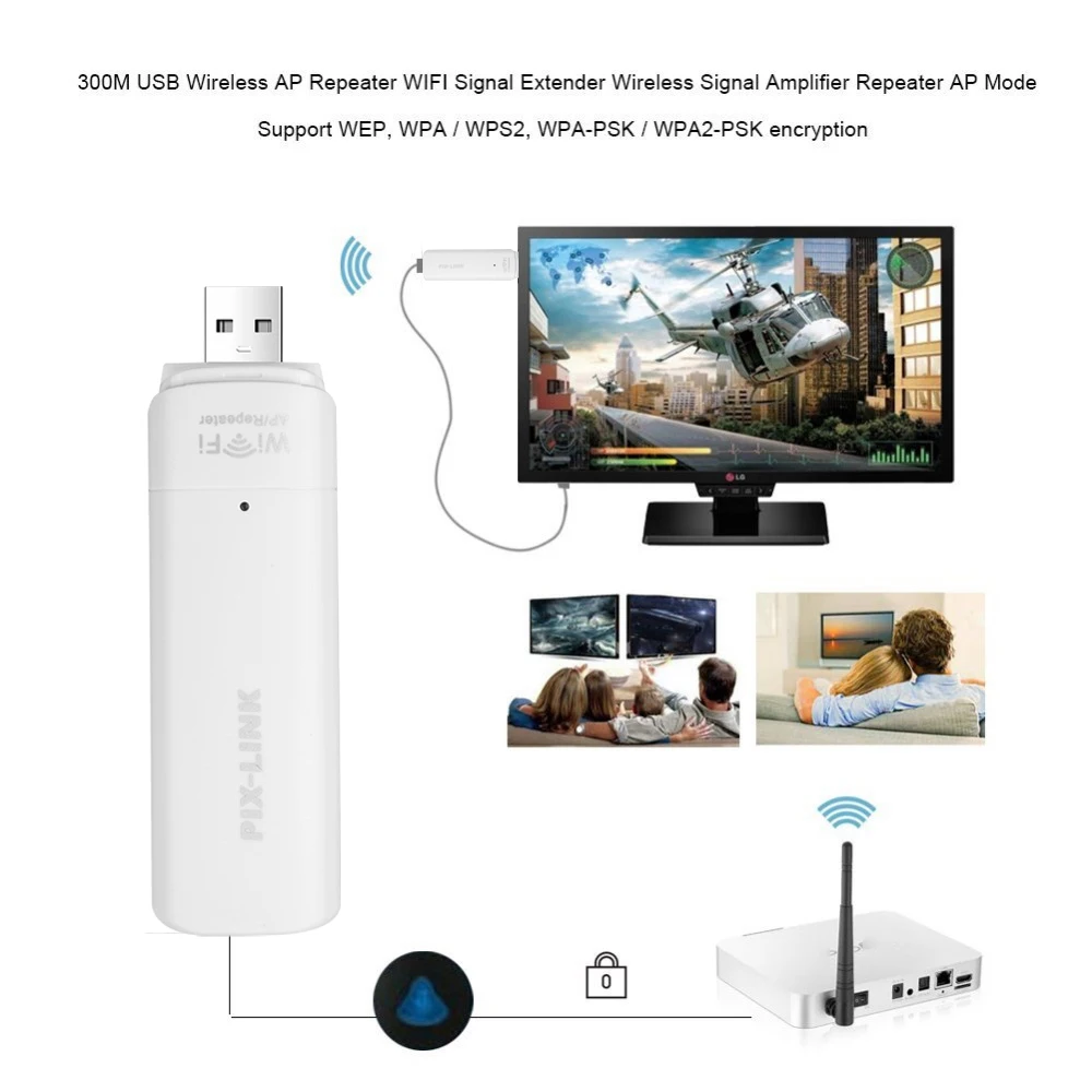 Kebidumei Wi-Fi Смарт ТВ сетевой адаптер Портативный USB беспроводная сеть RJ45 ретранслятор 300 Мбитс WiFi усилитель сигнала