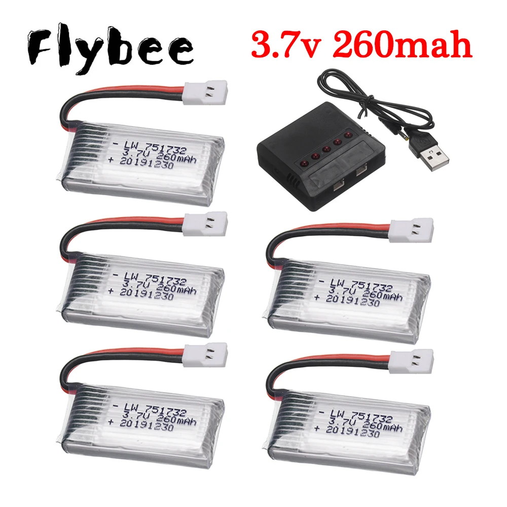 Литий-полимерный аккумулятор 3,7 в 260 мАч с зарядным устройством для фототехники H8 JJRC H2 H8 H48 H8Mini Радиоуправляемый вертолет Квадрокоптер, запасные части, оптовая продажа