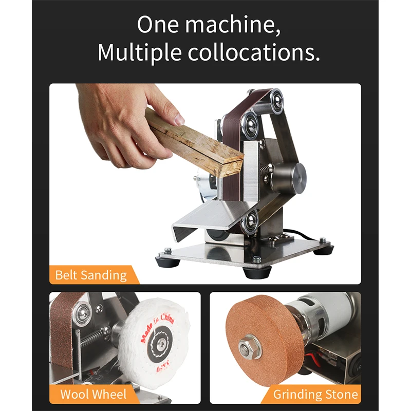 Особенности:Корпус изготовлен из нержавеющей стали для лазерной резки, прочный и практичный.Угол рабочего стола можно регулировать по желанию, что является простым в использовании.Абразивные Ленточные колеса имеют встроенный двойной подшипник, нескользящий дизайн и плавную работу.В двигателе используются двойные подшипники, высокая скорость, высокий крутящий момент и тихий.С помощью антивибрационных регулируемых подушечек для ног вы также можете снять подушечки для ног и прикрутить машину к столу или дереву для удобного использования.Песочный пояс является однородным, не легко терять песок, более износостойким.Характеристики:Материал: нержавеющая стальНапряжение: 110-240 В переменного токаНоминальное напряжение: 12-24 В постоянного токаСкорость вращения: 4000-9000 об/минРежим контроля скорости: 7 регулируемых передачТип 15 ленточно-шлифовальный станок ремень Размер: 15*330 мм/0,6 * 13.0in (60/80/120/180/240/320/400/600/800/1000 сетка)Размер машины: 150*143*140 мм/5,9*5,6 * 5.5inТип 15 ленточный шлифовальный станок Вес: 1059 г/2,3 фунтаПосылка Размер: 202*190*160 мм/8,0*7,5 * 6.3in