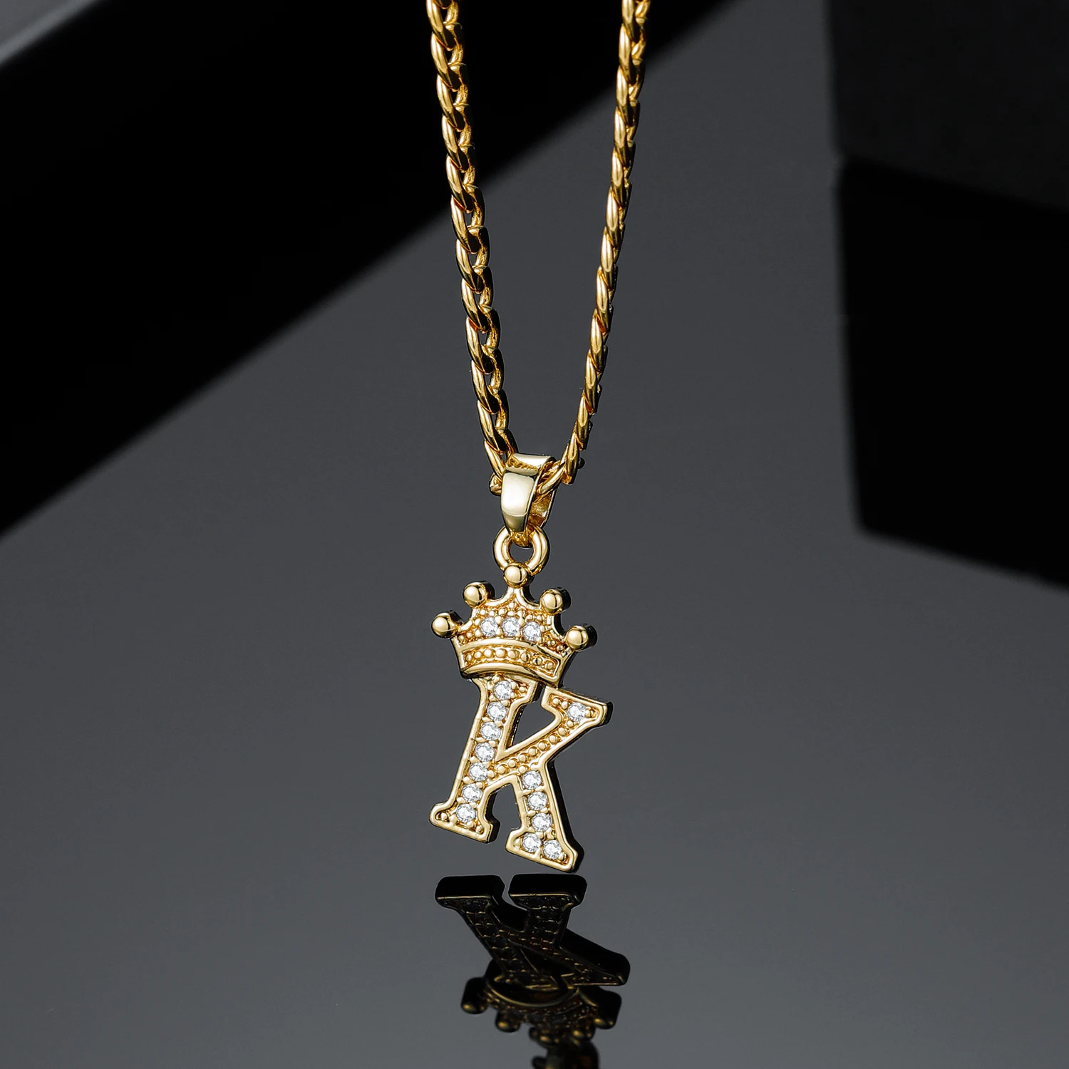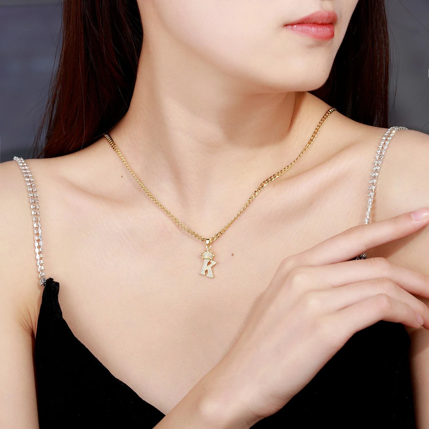 Ожерелье с подвеской в виде алфавита с кристаллами циркона для женщин Золотая Корона ожерелье с буквами инициала хип-хоп искусственное колье бижутерия