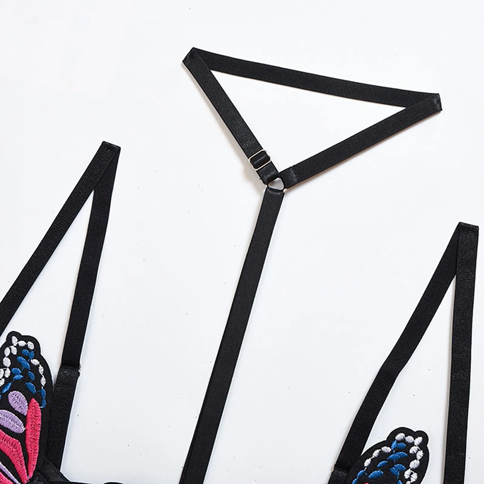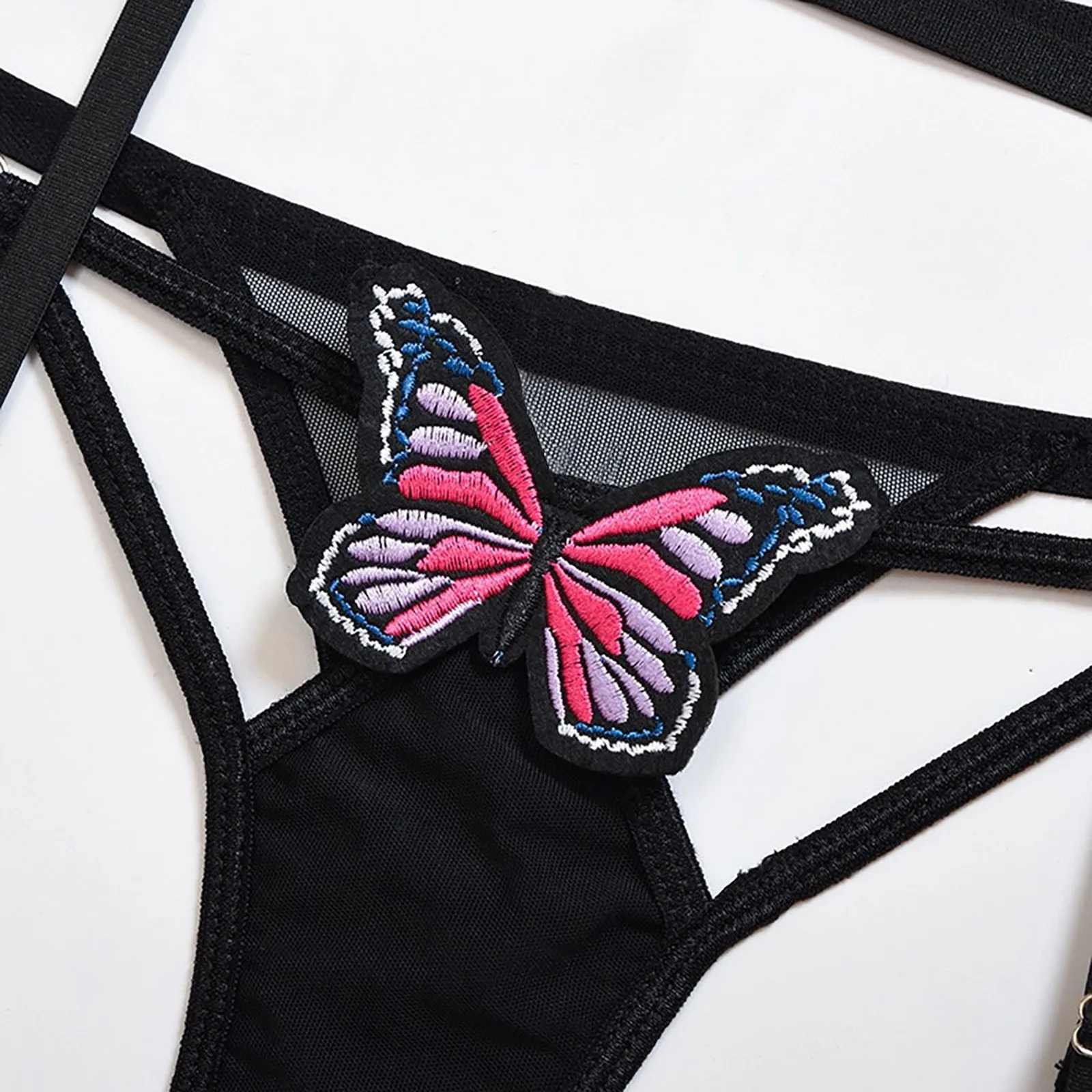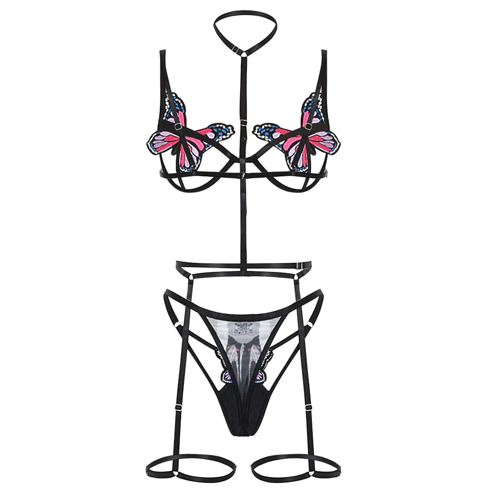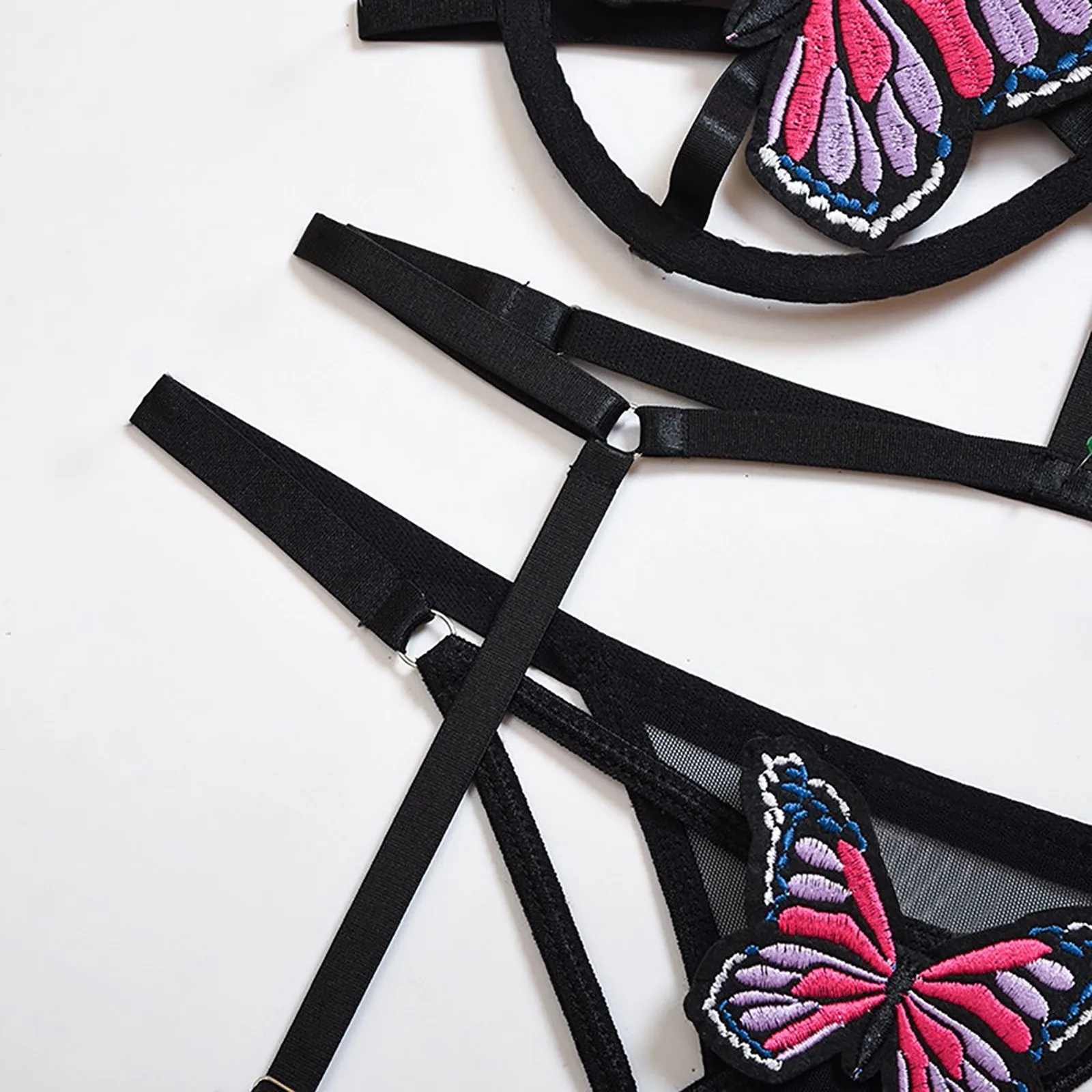 Женское сексуальное Сетчатое нижнее белье Прозрачный Кружевной Костюм из трех предметов с бабочкой