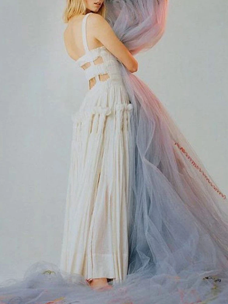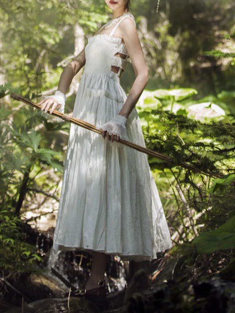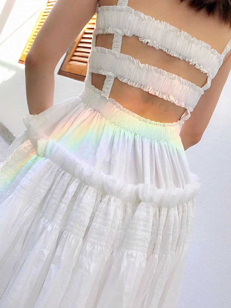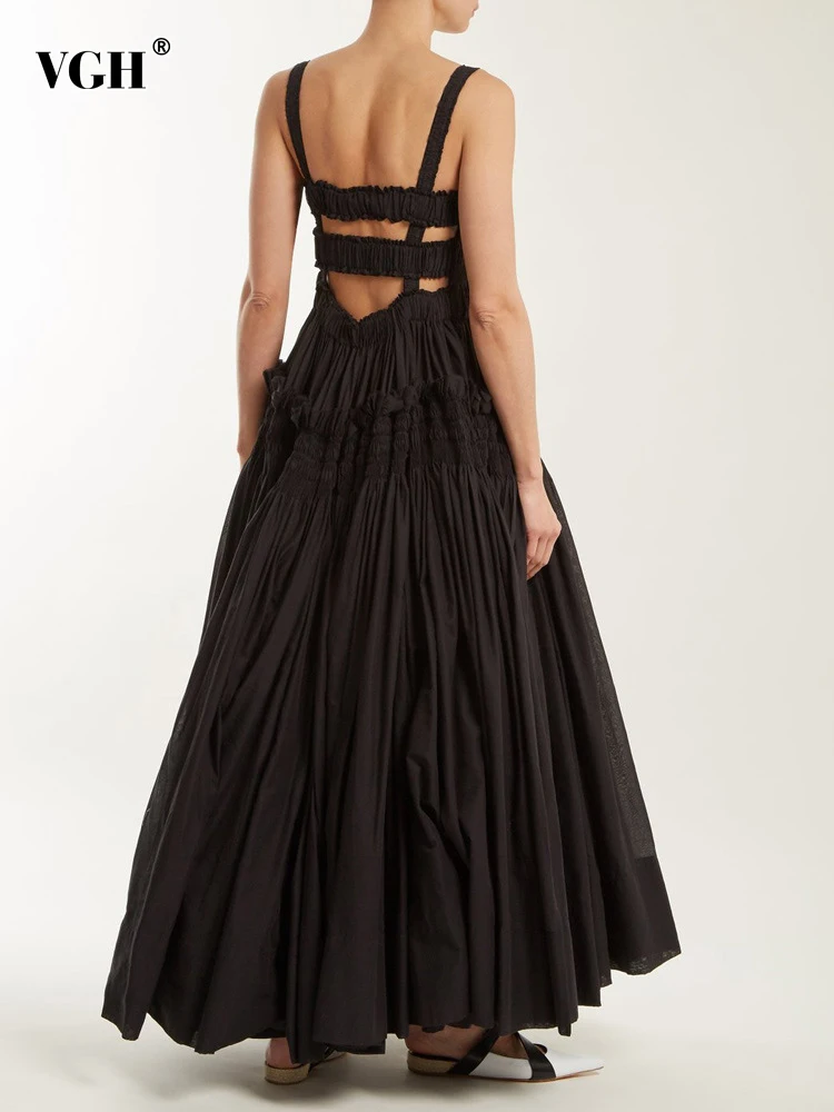 Женское ажурное платье на бретельках VGH, элегантное платье с оборками и открытой спиной, с высокой талией и буфами, весенняя одежда 2022