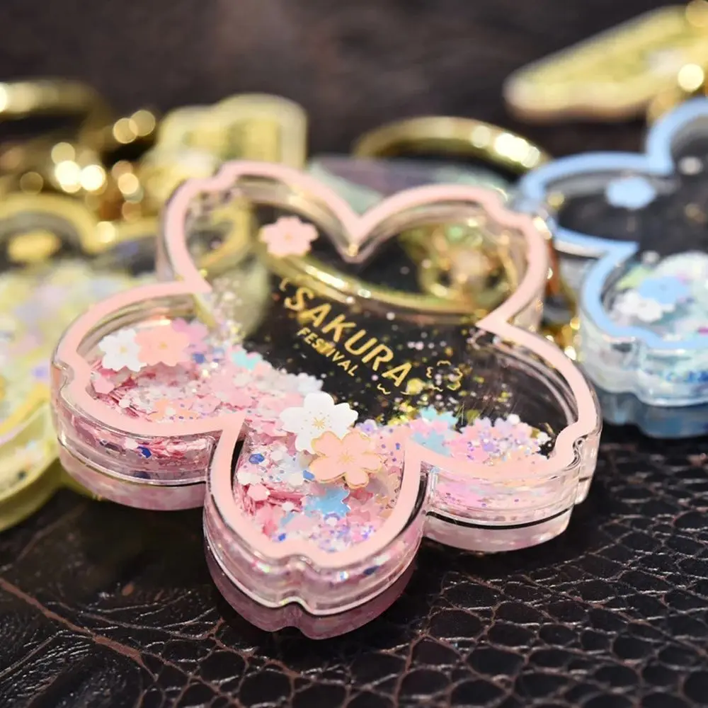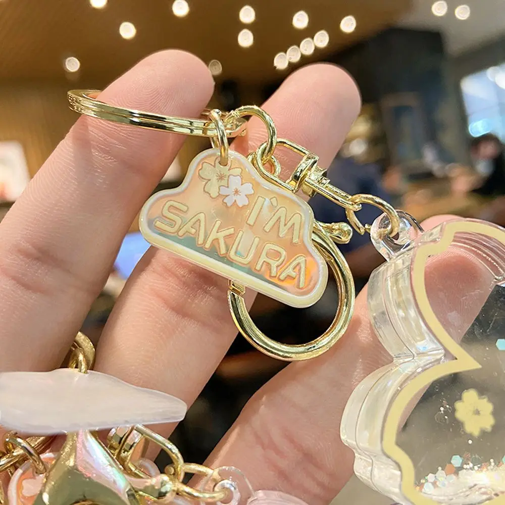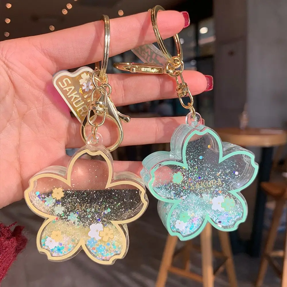 Милый брелок для ключей пара брелоков с сыпучим песком в масле, брелок для ключей с цветком вишни, брелок с жидкостью Сакура