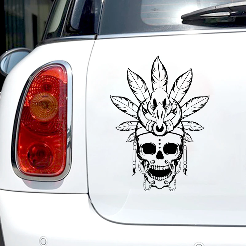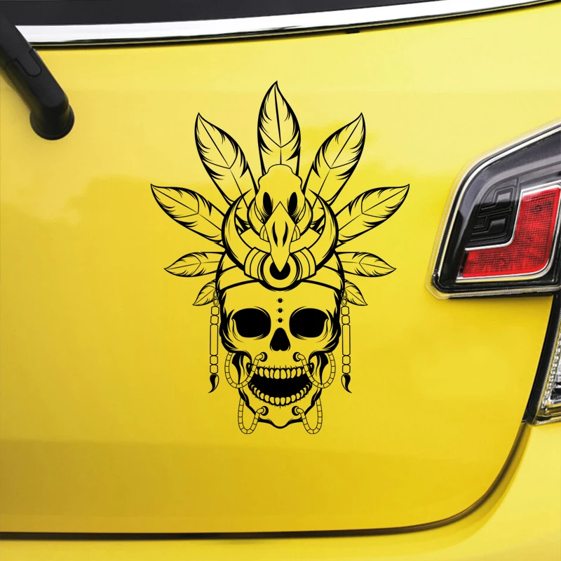 наклейки на авто Череп американских V2 индейцев наклейка черная виниловая наклейка водостойкая мотоциклетная наклейка на бампер прозрачный фон