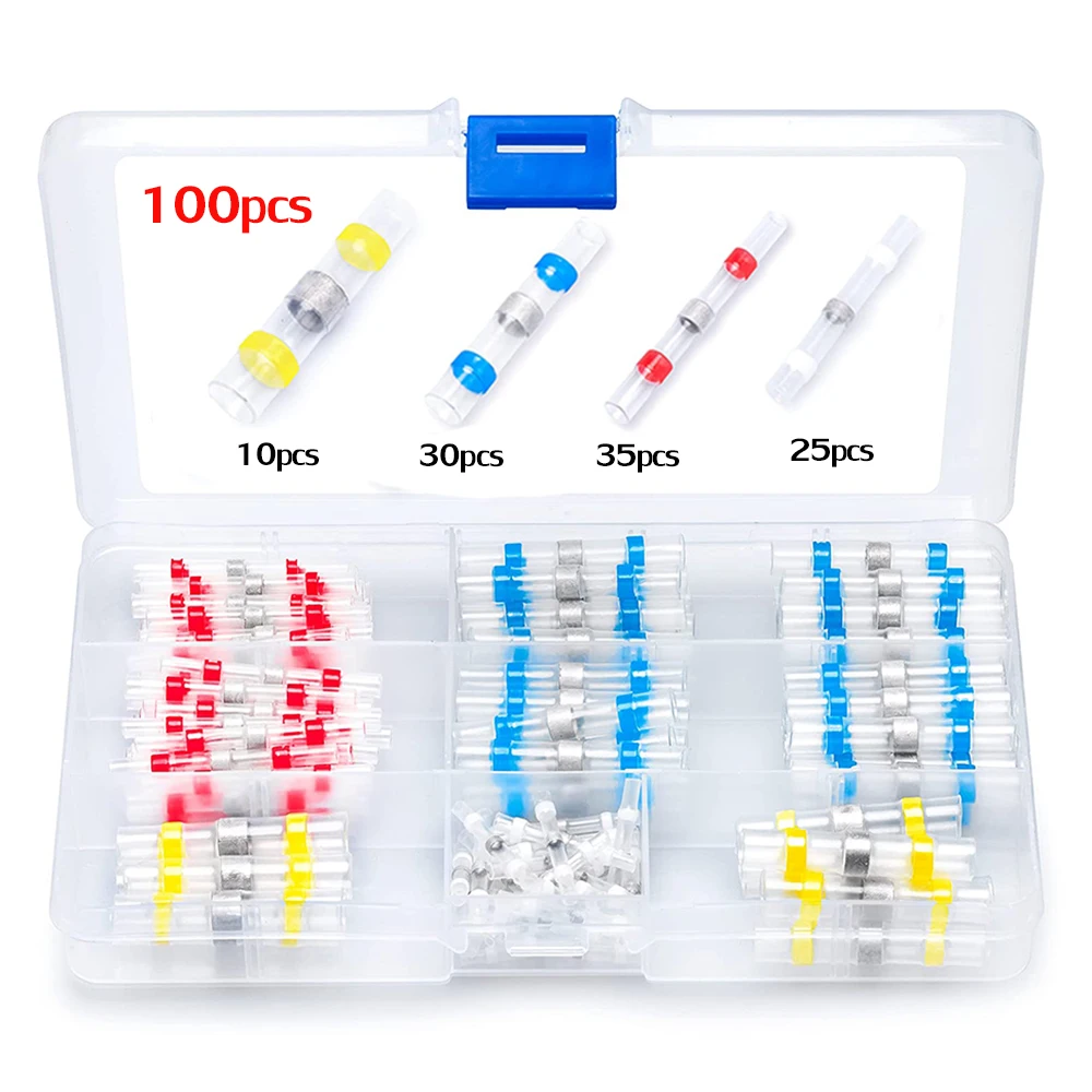 Термоусадочные стыковые обжимные клеммы, 50100 шт., водонепроницаемые электрические разъемы для пайки, комплект для сращивания проводов, автомобильный морской