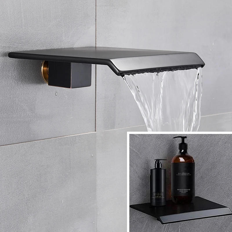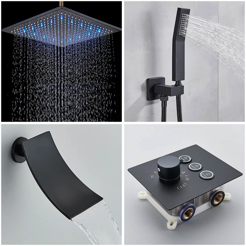 Роскошный черный светодиодный Термостатический смеситель для душа, большая Душевая система Водопад с кнопкой управления, термостатический смеситель, кран для ванны и душа