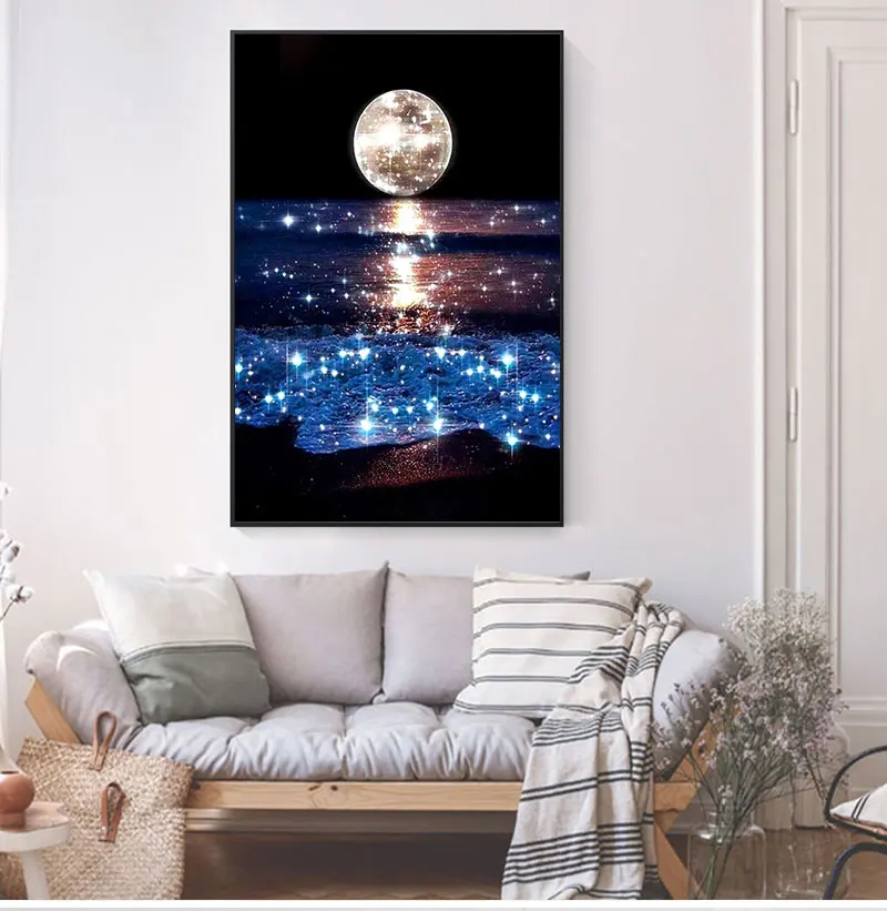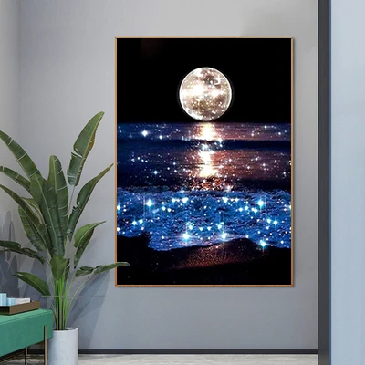 Алмазная 5D мозаичная картина Nabi, полностью круглая, квадратная, пейзаж, Луна, алмазная вышивка, побережье, украшение для творчества