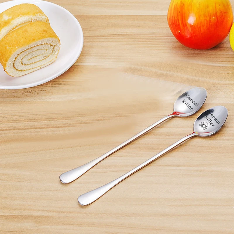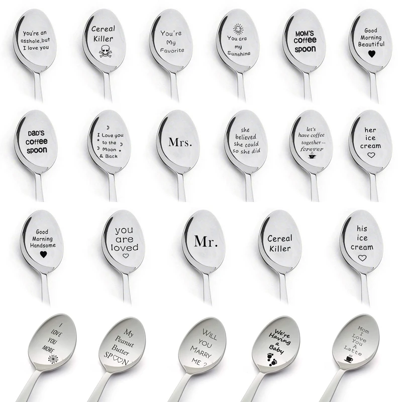 Кофейная ложка с надписью и длинной ручкой, посуда для чая, мороженого, десертная ложка на День святого Валентина, новогодний подарок, ложка для чая для использования в стиле хо