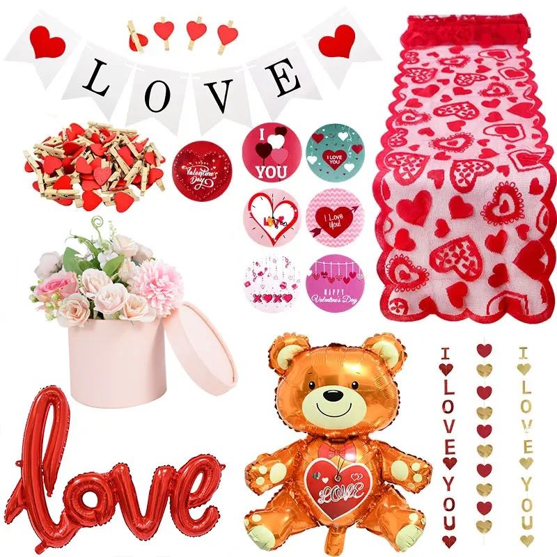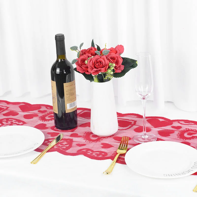 Свадебные кружевные бегуны с красным сердцем, украшенные розовым медведем из фольги, вечерние Бегуны на день рождения, подарок на день Святого Валентина