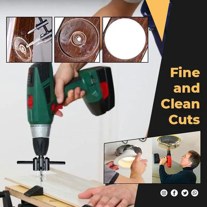 Его ручка, соединяющая электрическую дрель10 ммВ диаметре,Подходит для любых проводных или беспроводных дрелей.Просто отрегулируйте размер резки, подключите его к сверлу, а затем Отрежьте отверстие по мере необходимости. Никаких сложных операций.