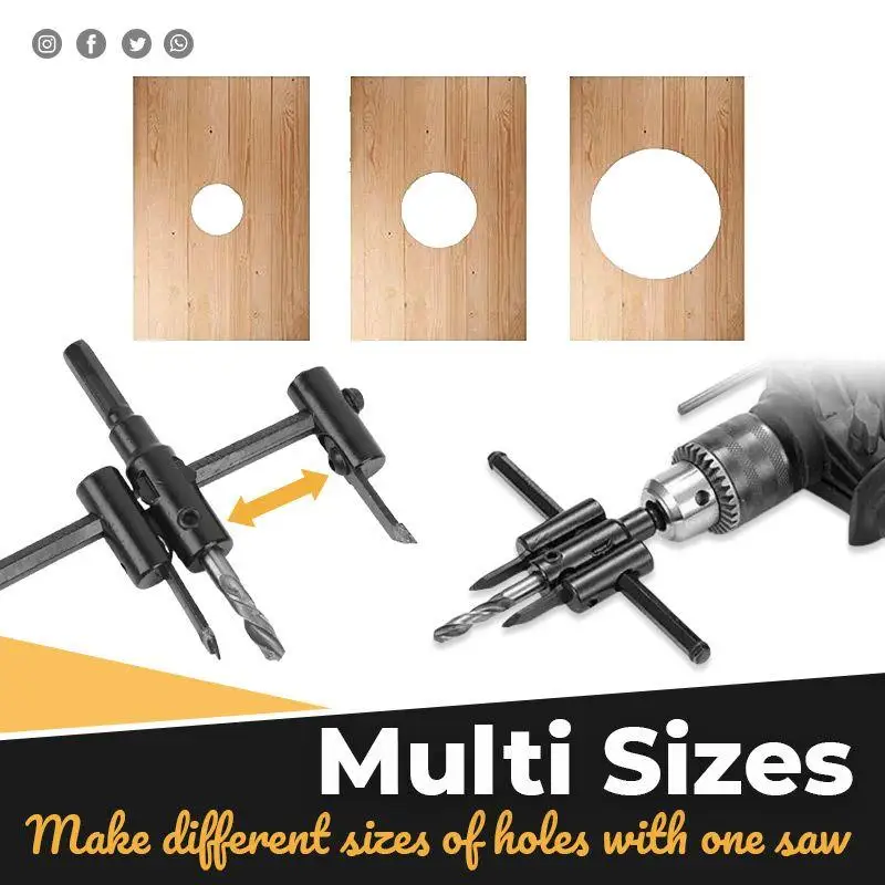 Эта деревообрабатывающая пила с отверстиемРегулируемые Диаметры от 30-120 мм, 30-200 мм, 30-300 мм, Так что вы можете отрезать различные размеры отверстий только одной пилой.Не нужно часто менять сверла.