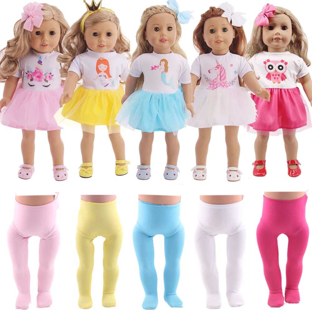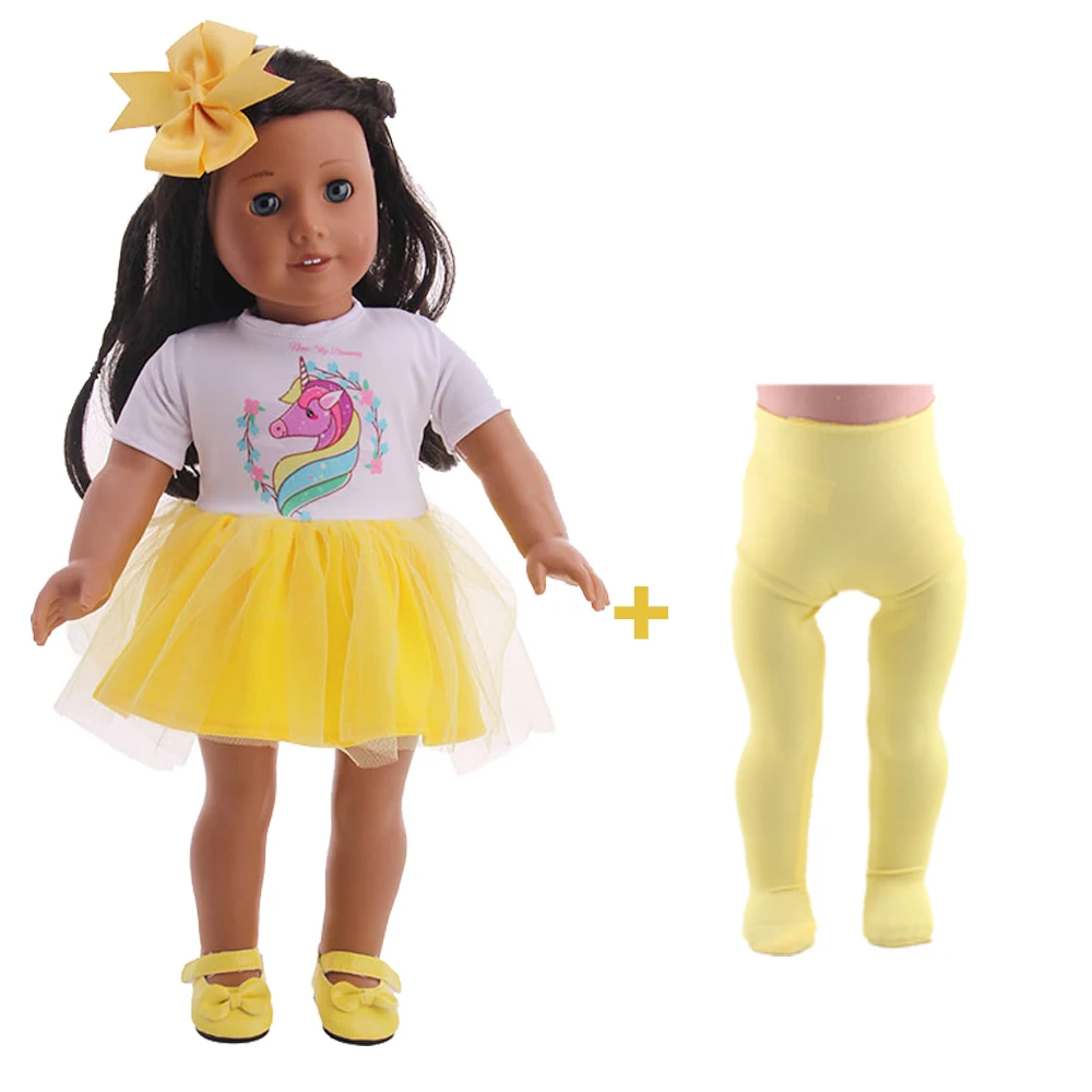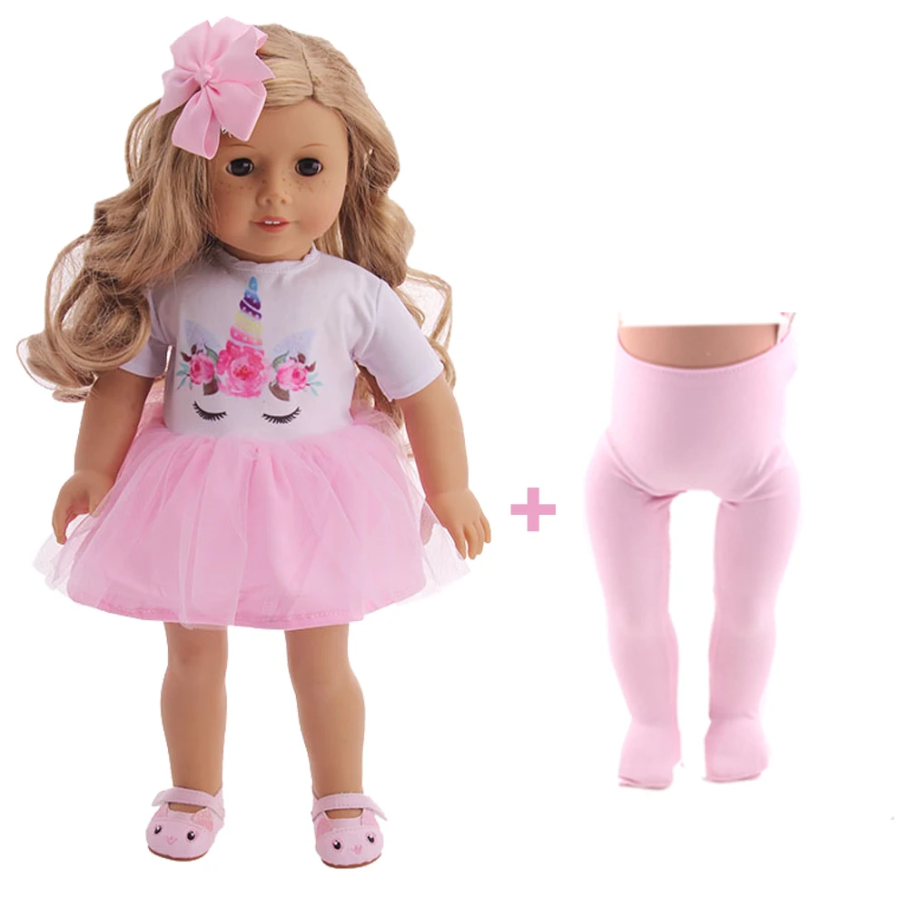 Одежда для кукол с единорогом юбка с вуалью + леггинсы для 18-дюймовых американских и 43 см кукол новорожденных нашего поколения, подарок на день рождения ребенка