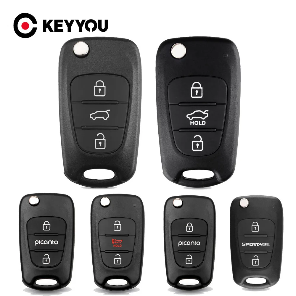 Складной чехол KEYYOU для Hyundai I20, I30, IX35, Accent, для Kia K2, K5, Picanto, Sportage, откидной Чехол с дистанционным управлением, пустой чехол с 3 кнопками