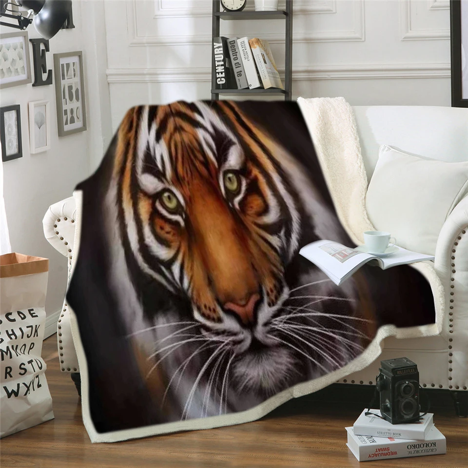 Постельное белье с изображением тигра льва 3D, высококачественное одеяло, шерпа, фланелевое одеяло, теплая кровать, мультяшное одеяло