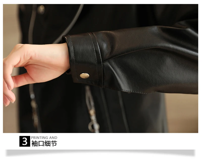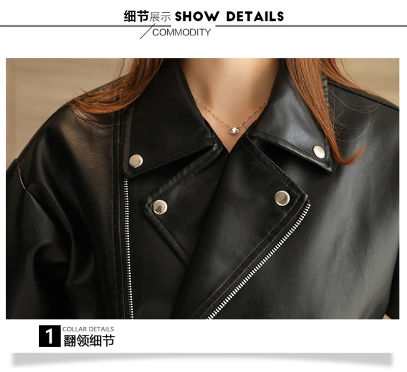 Женская Короткая кожаная куртка на молнии, с отворотом и длинным рукавом
