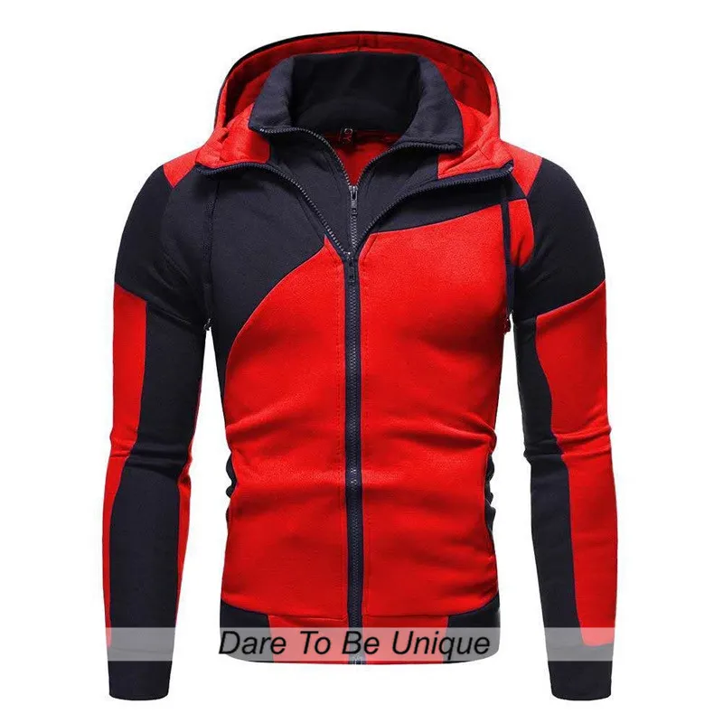 Мужские толстовки, зимние толстые свитшоты, пэчворк, двойная молния, теплый кардиган с капюшоном для мужчин, тонкая толстовка, уличная одежда, Свитшот