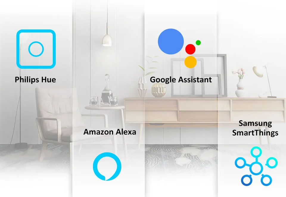 Функция: Голосовое управление, дистанционное управление с помощью приложения, регулировка яркости, Совместимость с Amazon Alexa Echo Google Home Assistant, IFTTT