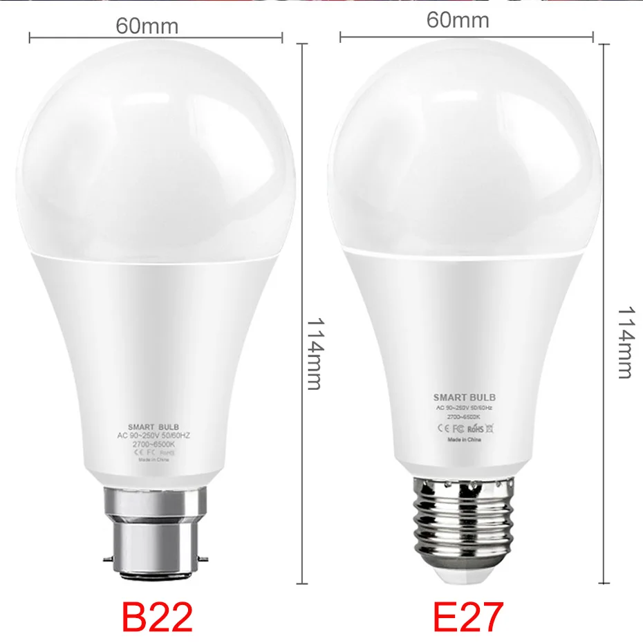 Умсветильник лампа B22 E27 с Wi-Fi, 15 Вт, светодиодная лампа RGB A...