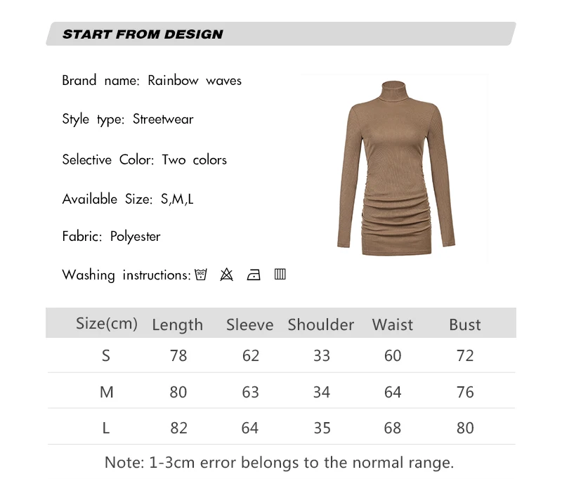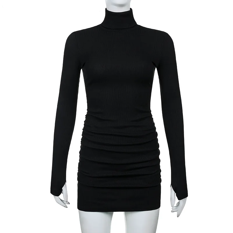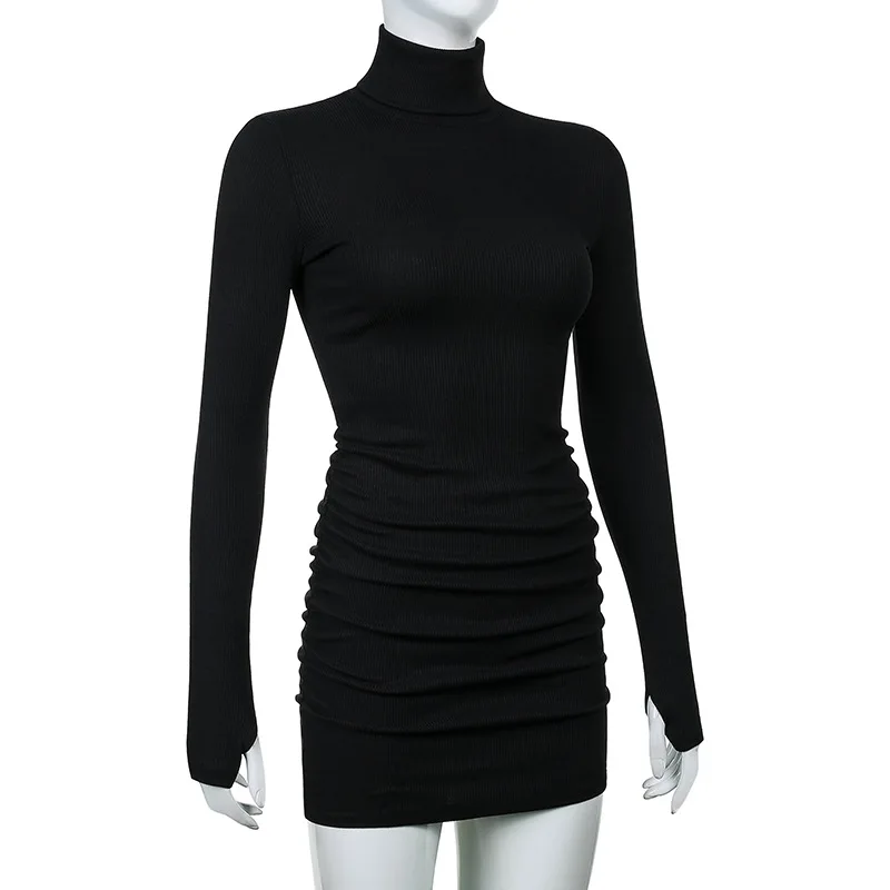 Женское трикотажное платье-водолазка с длинным рукавом
