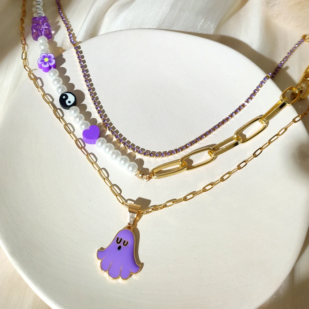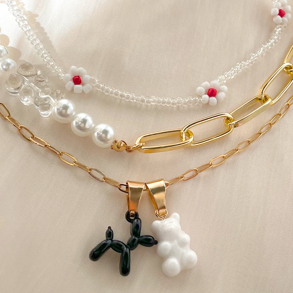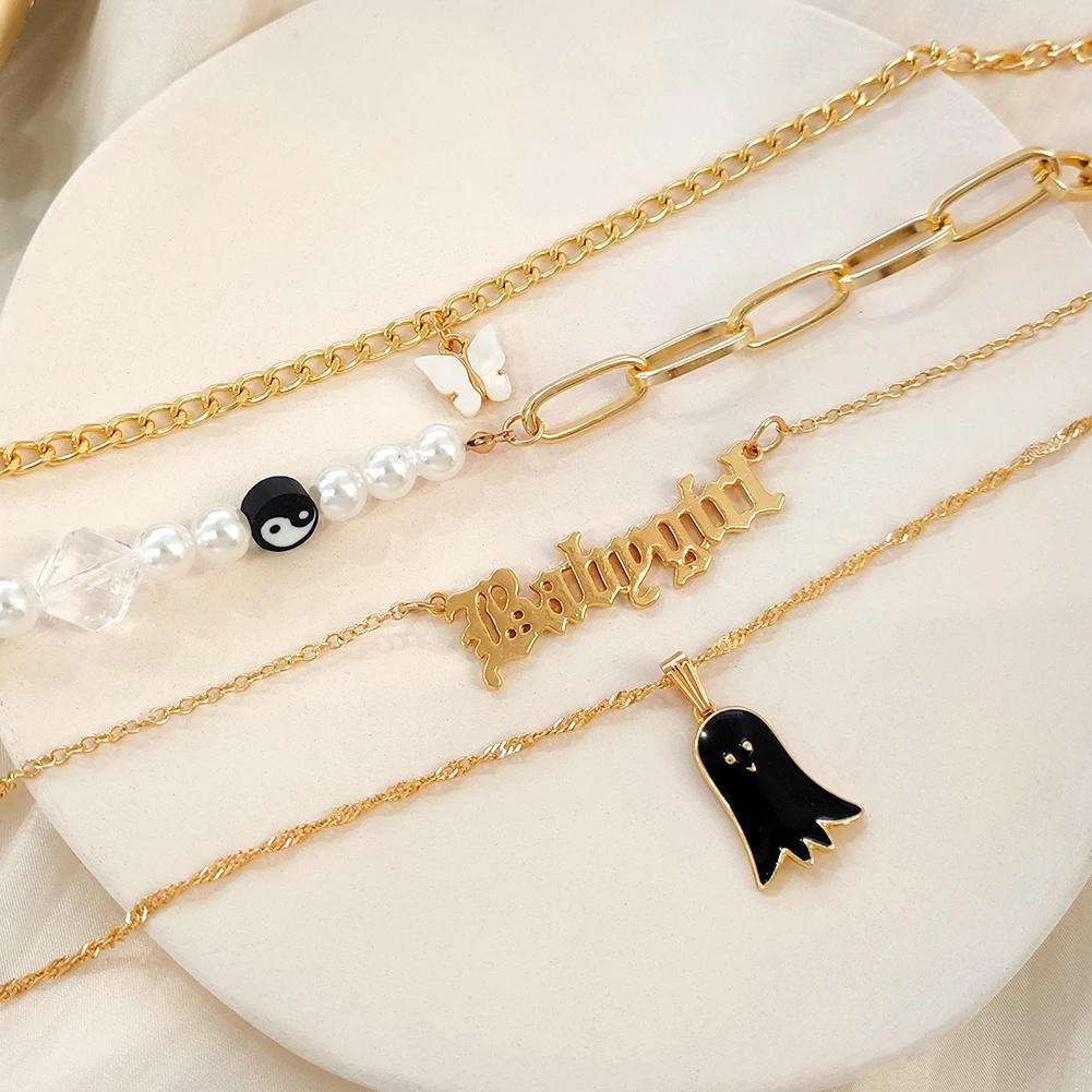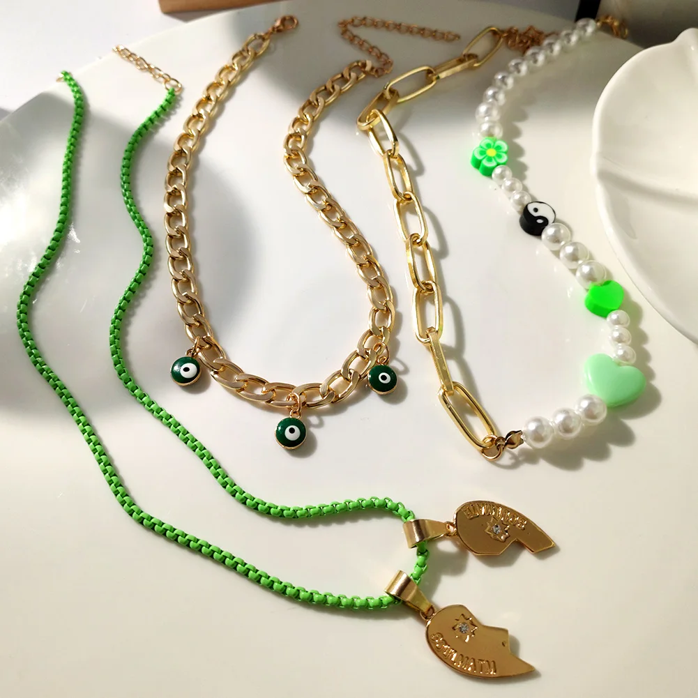 Ожерелье женское многослойное с жемчугом и подвеской в виде сердца и сглаза