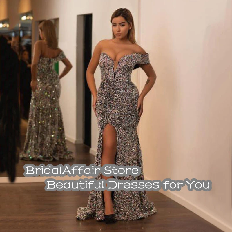 Вечернее платье-Русалка с блестками BridalAffair 2022, Вечерние Платья С Боковым Разрезом, вечерние платья в саудовском, арабском стиле, вечерние платья