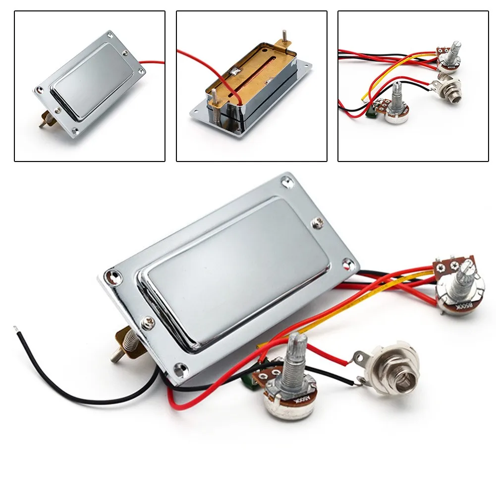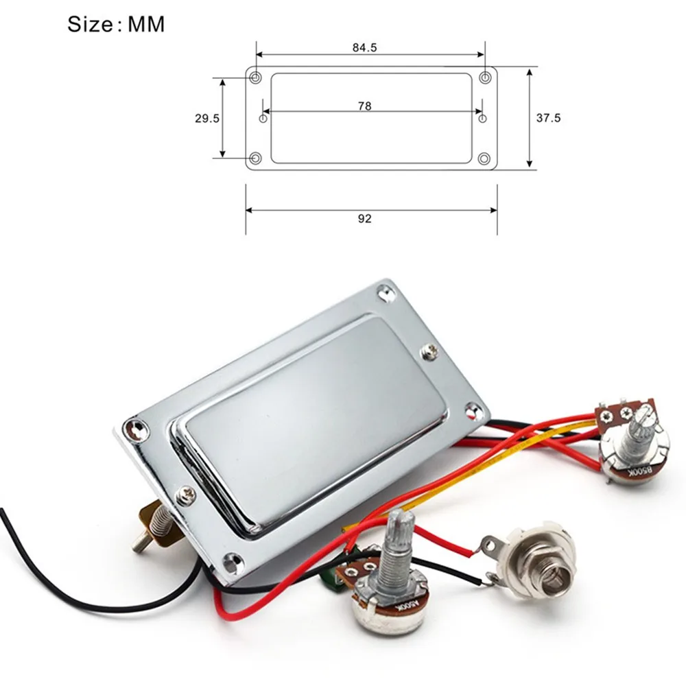 Включает в себя двойной катушки пикап, A500K мини горшки, B500K мини горшки, 1/4 дюйма (6,35 мм) разъем.