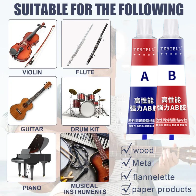 Клей для музыкальных инструментов, 1608040 г, клей для ремонта деревянной доски пианино, клей A + B, акриловая структура, клей, ремонтная паста