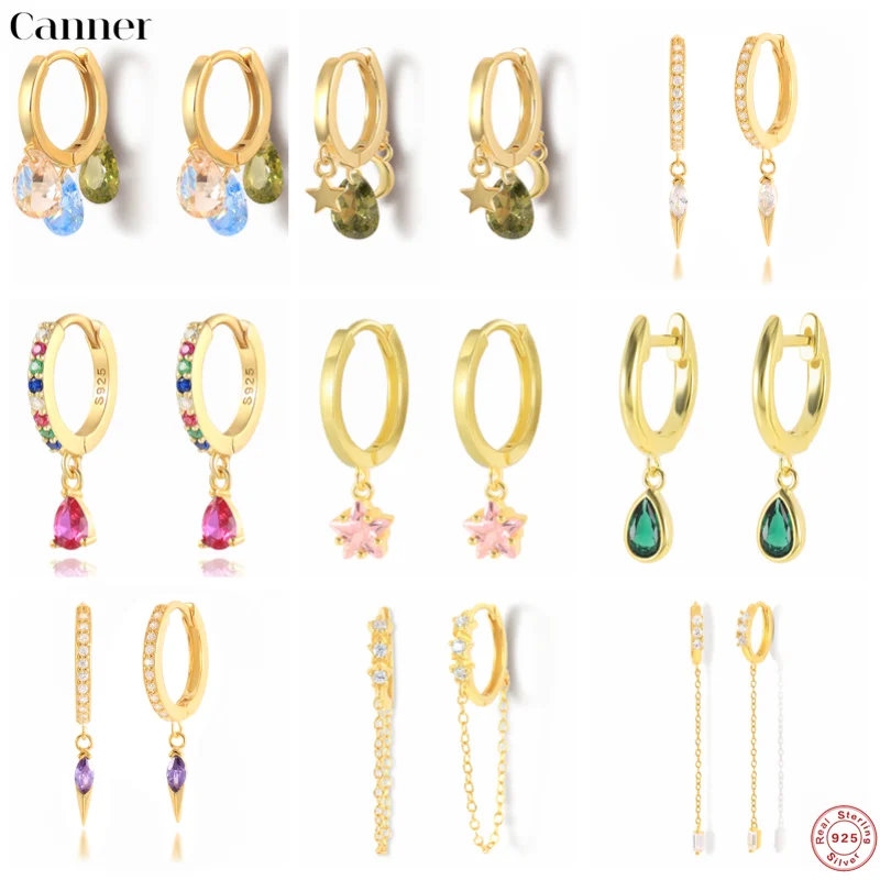 Женские серьги-капельки CANNER из стерлингового серебра 925 пробы, Разноцветные серьги для пирсинга Huggie, ювелирные изделия