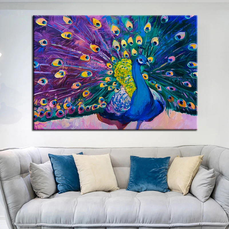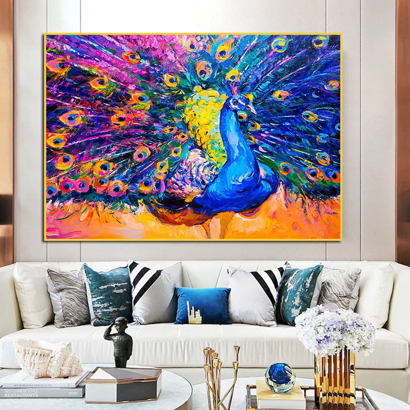 Абстрактная животная павлин с открытым экраном красочные перья картина маслом на холсте настенные картины декор для гостиной дома